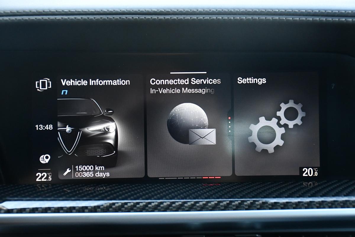 Možnost dokoupení záruky na všechny součástky až na 48 měsíců. 100% garance na počet ujetých kilometrů. Prověřené vozy společností Cebia s možností nahlédnutí do výpisu Cebia Reportu. Dále si také můžete nechat prověřit vůz vlastním mechanikem či autorizovaným servisem. Vůz původem z Německa po 1. majiteli, ze servisní historii. Výbava vozidla: ( Carbon exterior mirror caps Adaptive cruise control Passenger airbag can be deactivated Driver/passenger airbags Active yaw control (AYC) Trailer stabilisation programme (TSA) Anti-lock braking system (ABS) Traction control (ASR) Drive type: All-wheel drive Dual-flow exhaust system Electrically adjustable, heated and folding exterior mirrors Bi-xenon headlights with dynamic cornering lights (AFS) LED indicators integrated into exterior mirrors Brake system: Brembo Brake assist (HBA / EBA) Brake lights with emergency function (automatic activation of hazard warning lights) Black painted brake calipers Electronic brake force distribution (EBD) Electronic stability control (ESC) Electronic traction control Driver assistance system: Alfa Romeo D.N.A. driving dynamics system Driver assistance system: Autonomous emergency braking (AEB) Driver assistance system: Hill start assist (Hill-Holder) Driver assistance system: Forward collision warning (FCW) Electric windows front + rear Black window frames Floor mats Luggage net in boot/cargo area Automatic transmission (8-speed) Cup holders Seatbelt tensioners LED rear lights Infotainment centre with 7" colour display Infotainment system: UConnect 3D Nav (8.8" colour screen) Interior: Dark interior, black roof pillars and headliner Interior: Carbon interior trim Interior: Carbon-look dashboard and door trim Interior mirror with automatic dimming Isofix mountings for child seats Checkered pattern Tato nabídka není návrh na uzavření kupní smlouvy dle zákona 89/2.