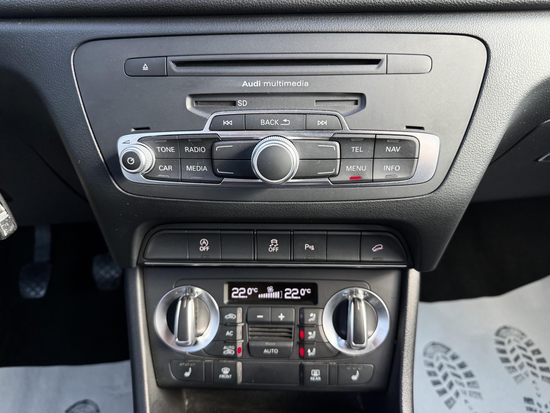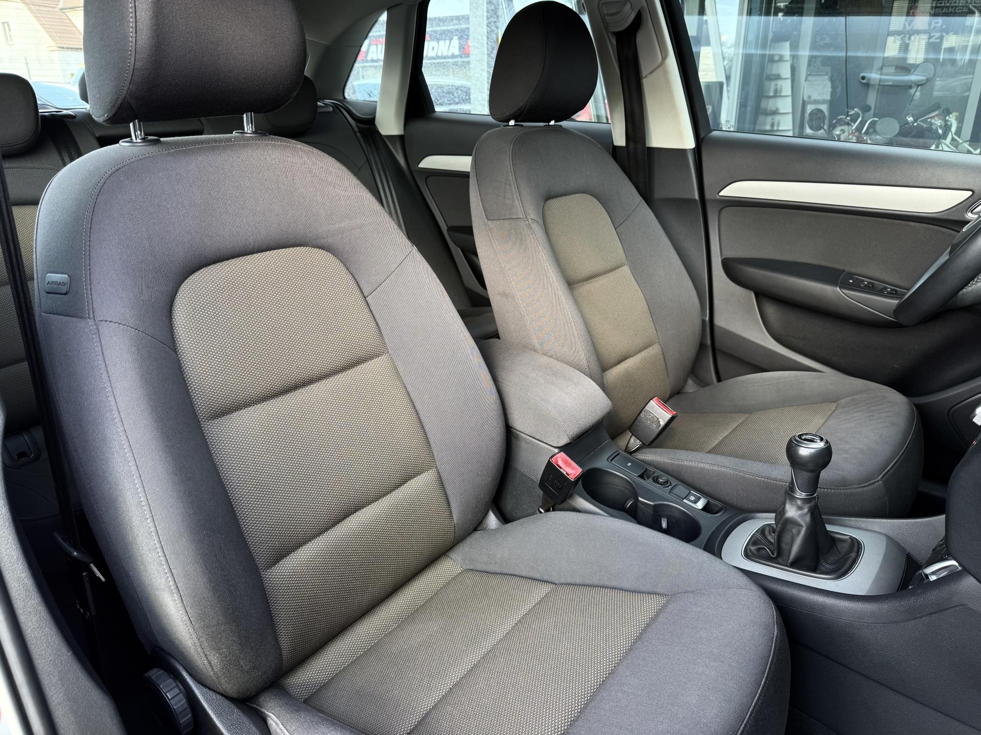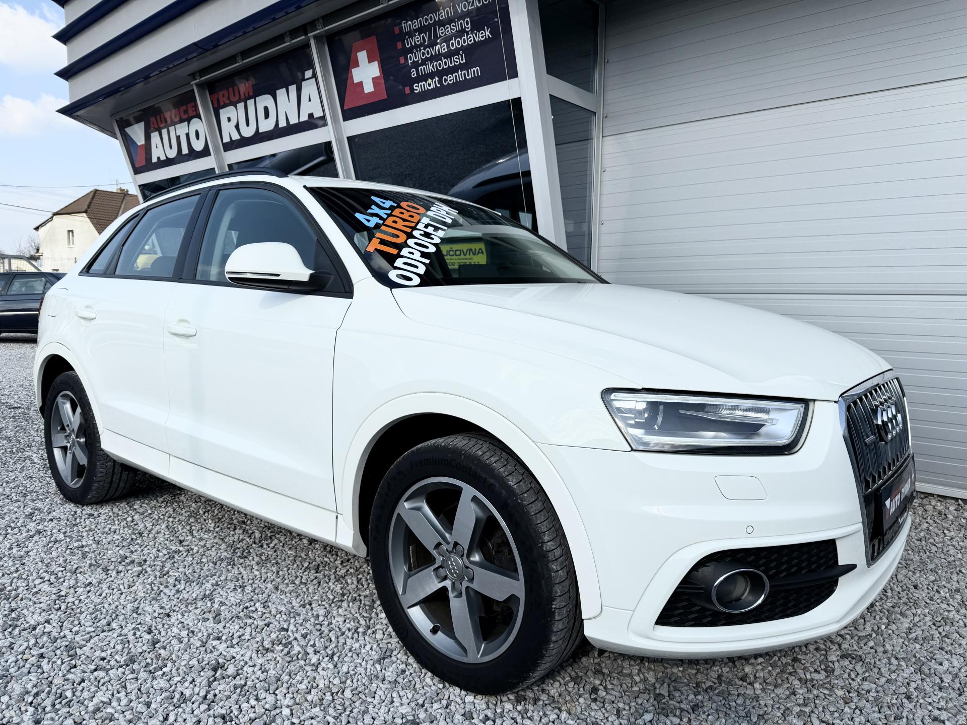 Výhodné financování od 0,Kč ! Ke každému vozu dárek ! Garance původu vozidla a počtu ujetých kilometrů ! Provedení Audi Q3 2,0TFSI 125kW/170PS Quattro ! 6 stupňová převodovka, Pohon 4x4, Stereo s CD, AUX, Bluetooth, Hands free, Paměťová karta, Satelitní navigace, Automatická dvouzonová klimatizace, Vyhřívaná sedadla, Isofix, Elektrická okna, Elektricky ovládaná a vyhřívaná zrcátka, Přední a zadní parkovací senzory, Xenonové světlomety, LED denní svícení, LED zadní světla, Senzor světel, Start/Stop systém, Tempomat, Alu kola, ABS, ASR, ESP a další..! Vozidlo pravidelně servisováno v autorizovaném servisu Audi ! Poslední servis ve 160 621km ! MOŽNÝ ODPOČET DPH !