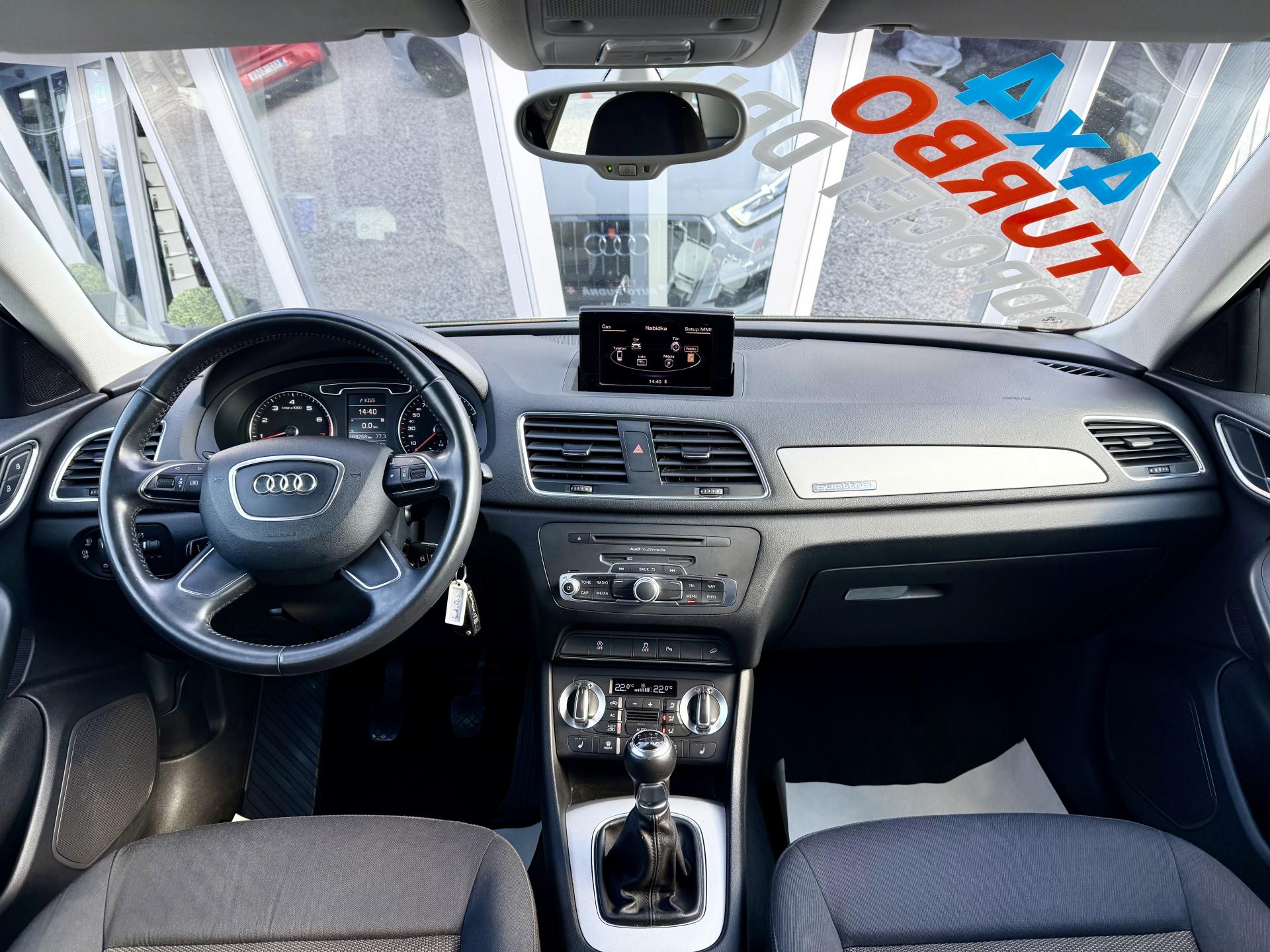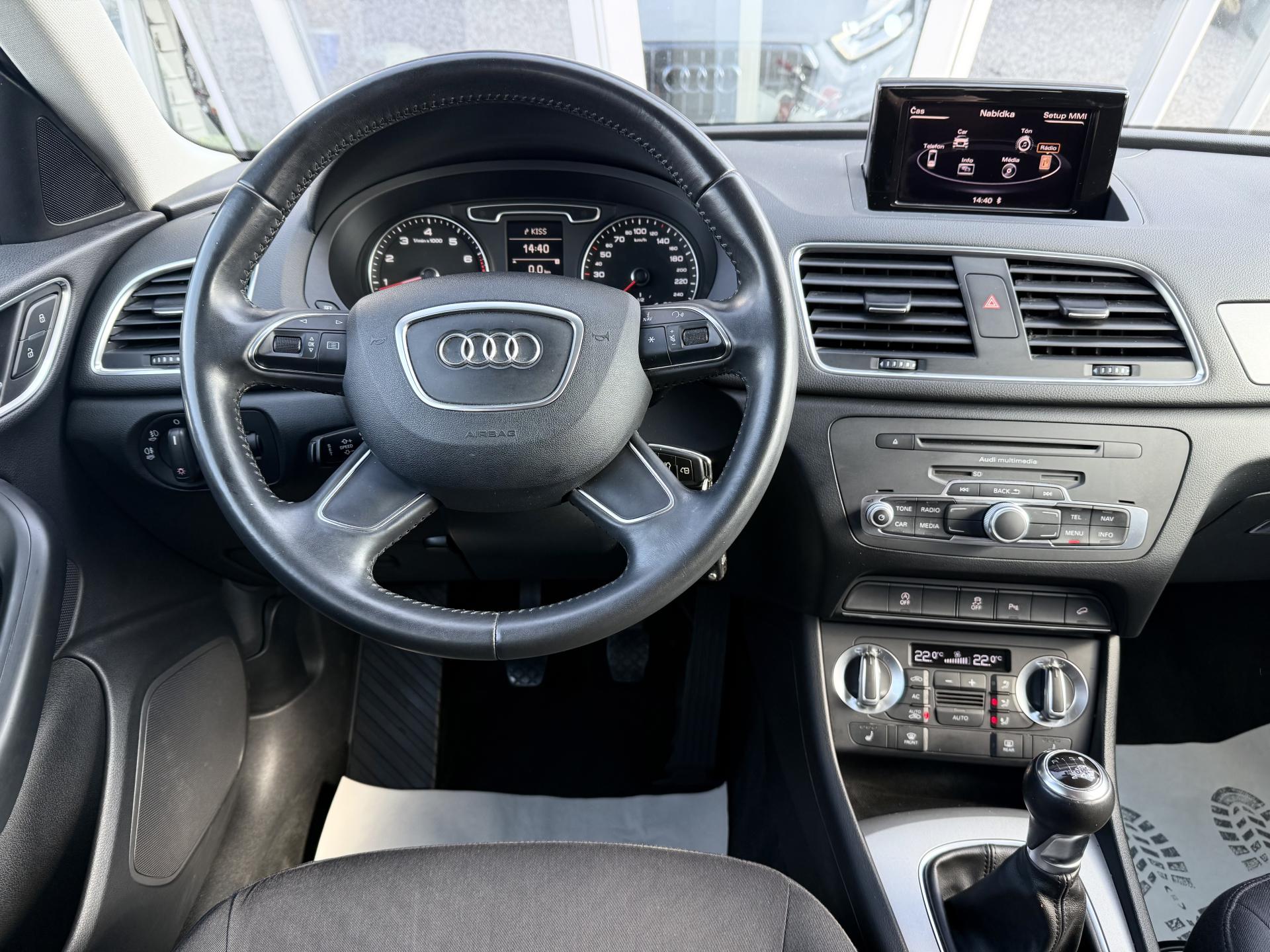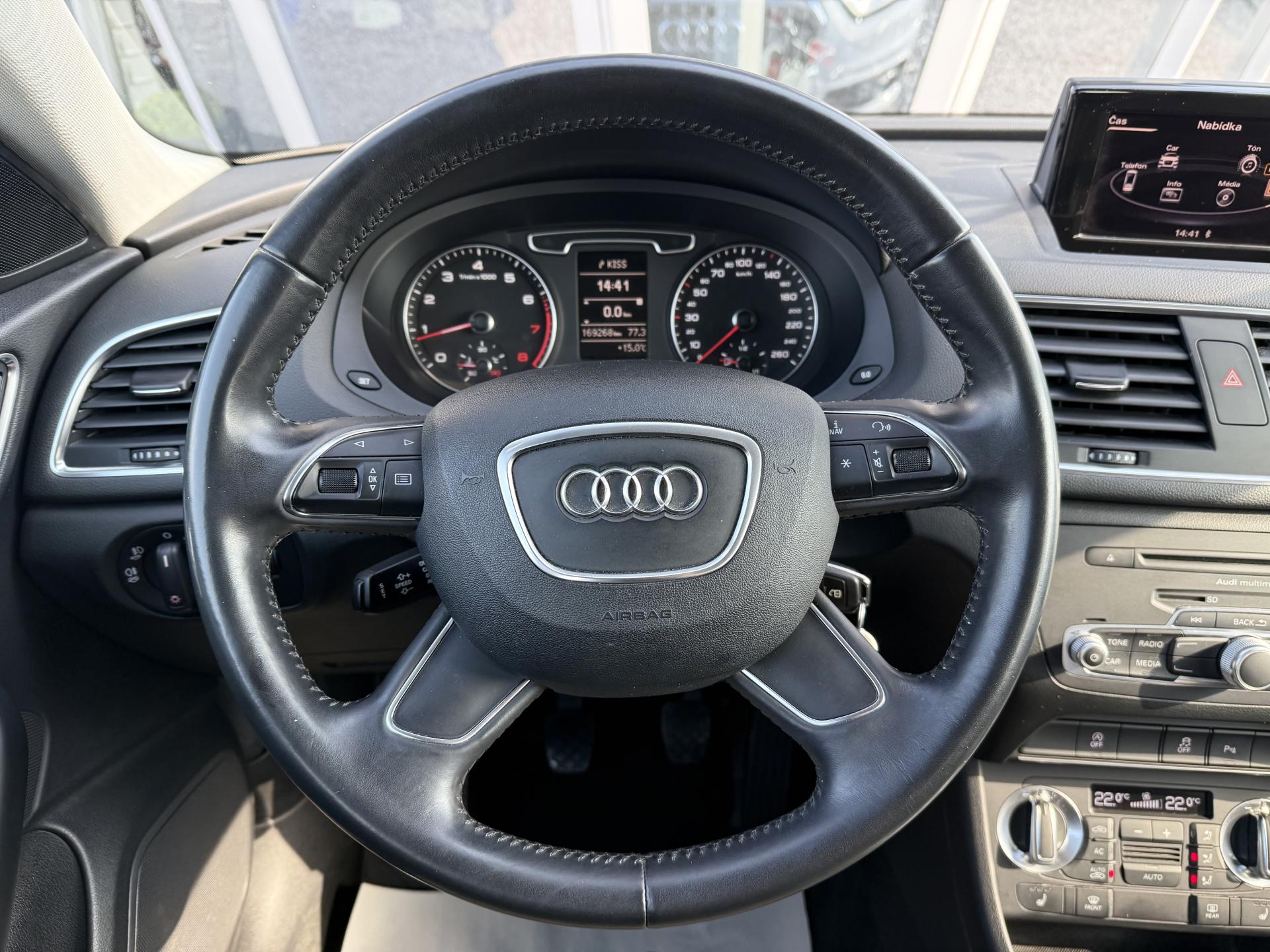 Výhodné financování od 0,Kč ! Ke každému vozu dárek ! Garance původu vozidla a počtu ujetých kilometrů ! Provedení Audi Q3 2,0TFSI 125kW/170PS Quattro ! 6 stupňová převodovka, Pohon 4x4, Stereo s CD, AUX, Bluetooth, Hands free, Paměťová karta, Satelitní navigace, Automatická dvouzonová klimatizace, Vyhřívaná sedadla, Isofix, Elektrická okna, Elektricky ovládaná a vyhřívaná zrcátka, Přední a zadní parkovací senzory, Xenonové světlomety, LED denní svícení, LED zadní světla, Senzor světel, Start/Stop systém, Tempomat, Alu kola, ABS, ASR, ESP a další..! Vozidlo pravidelně servisováno v autorizovaném servisu Audi ! Poslední servis ve 160 621km ! MOŽNÝ ODPOČET DPH !