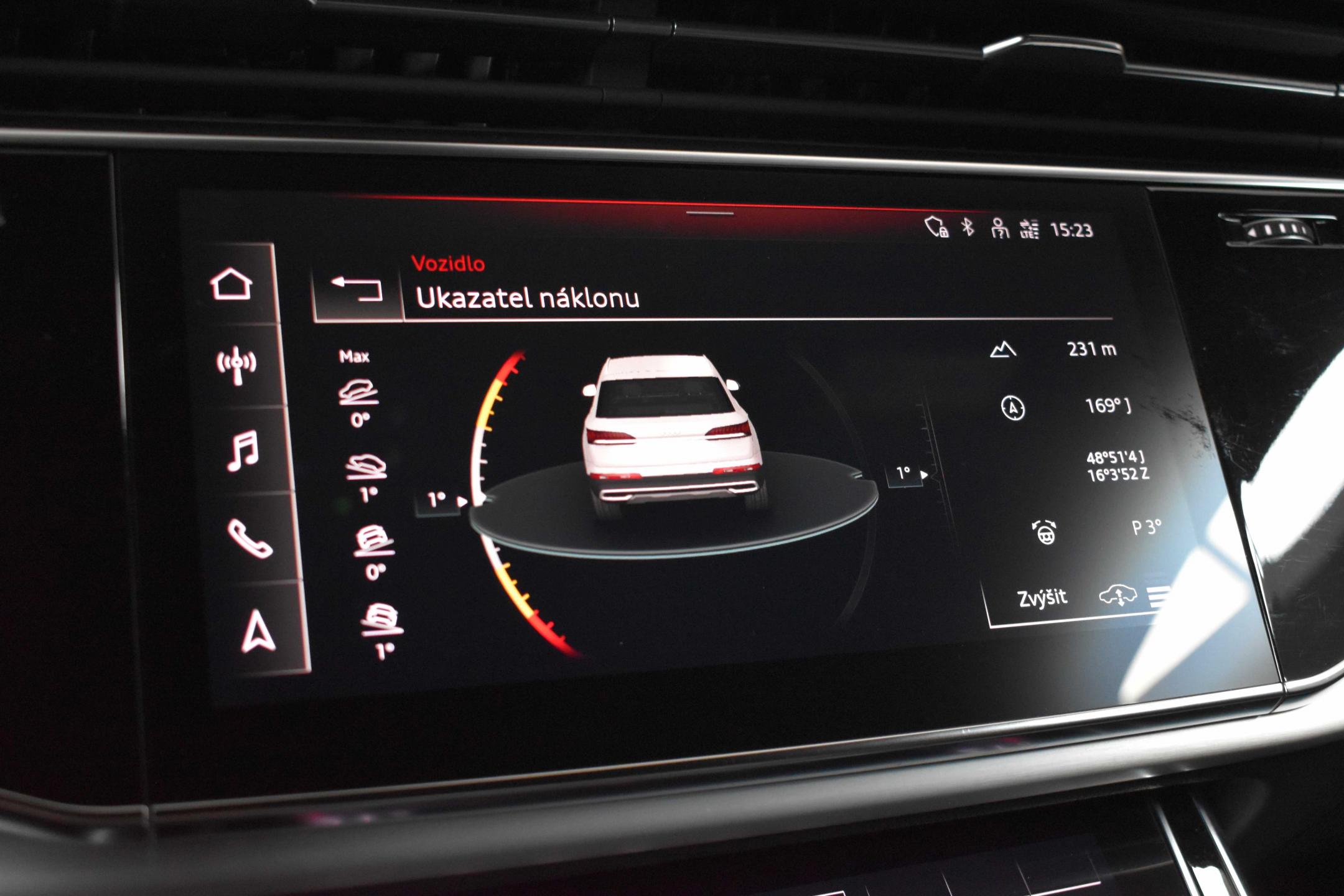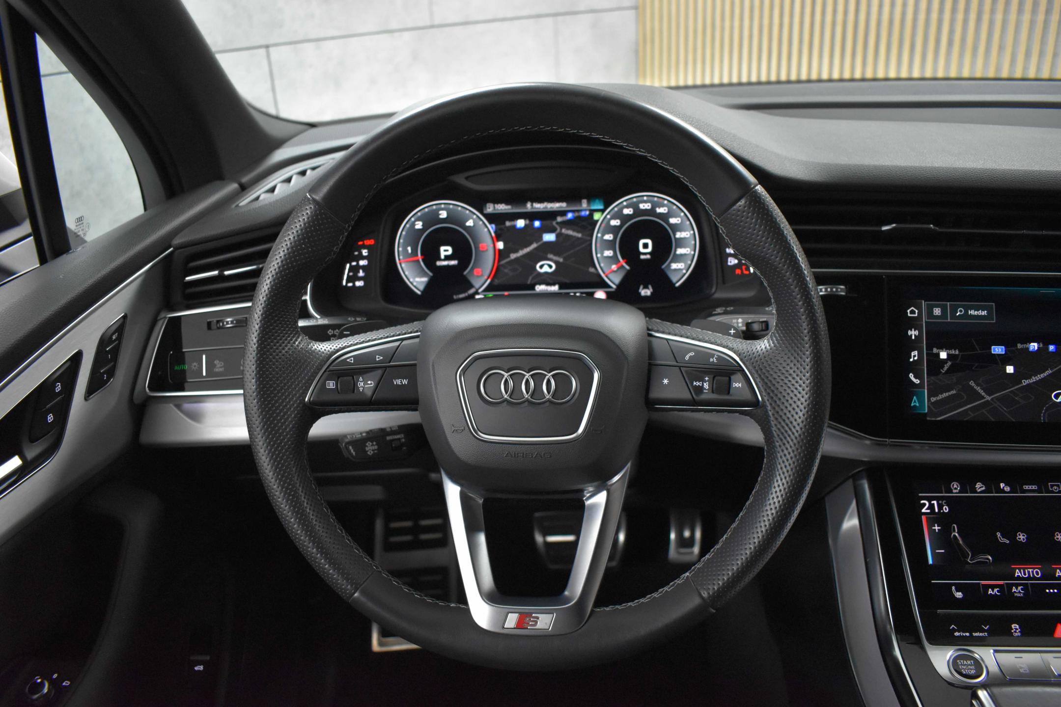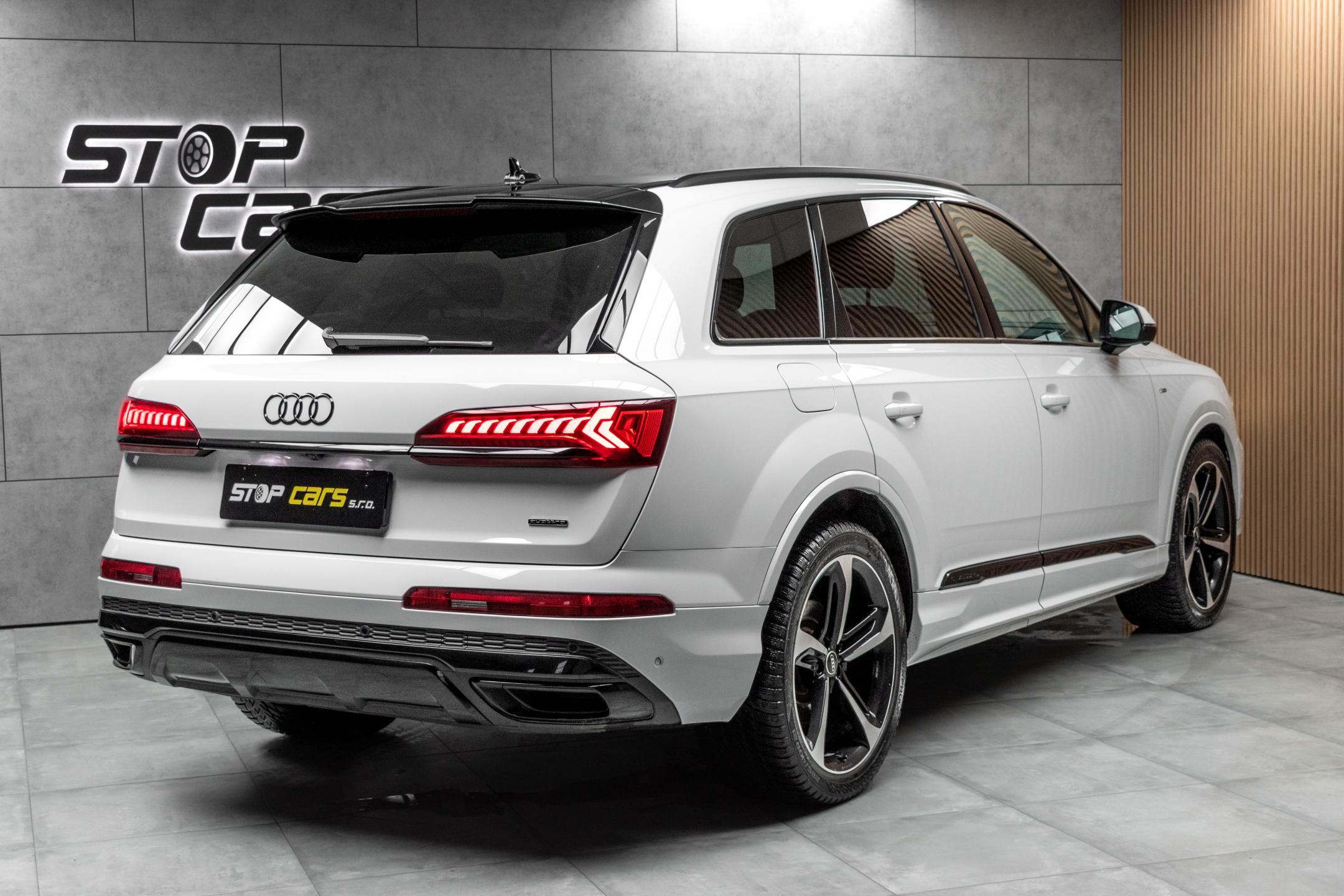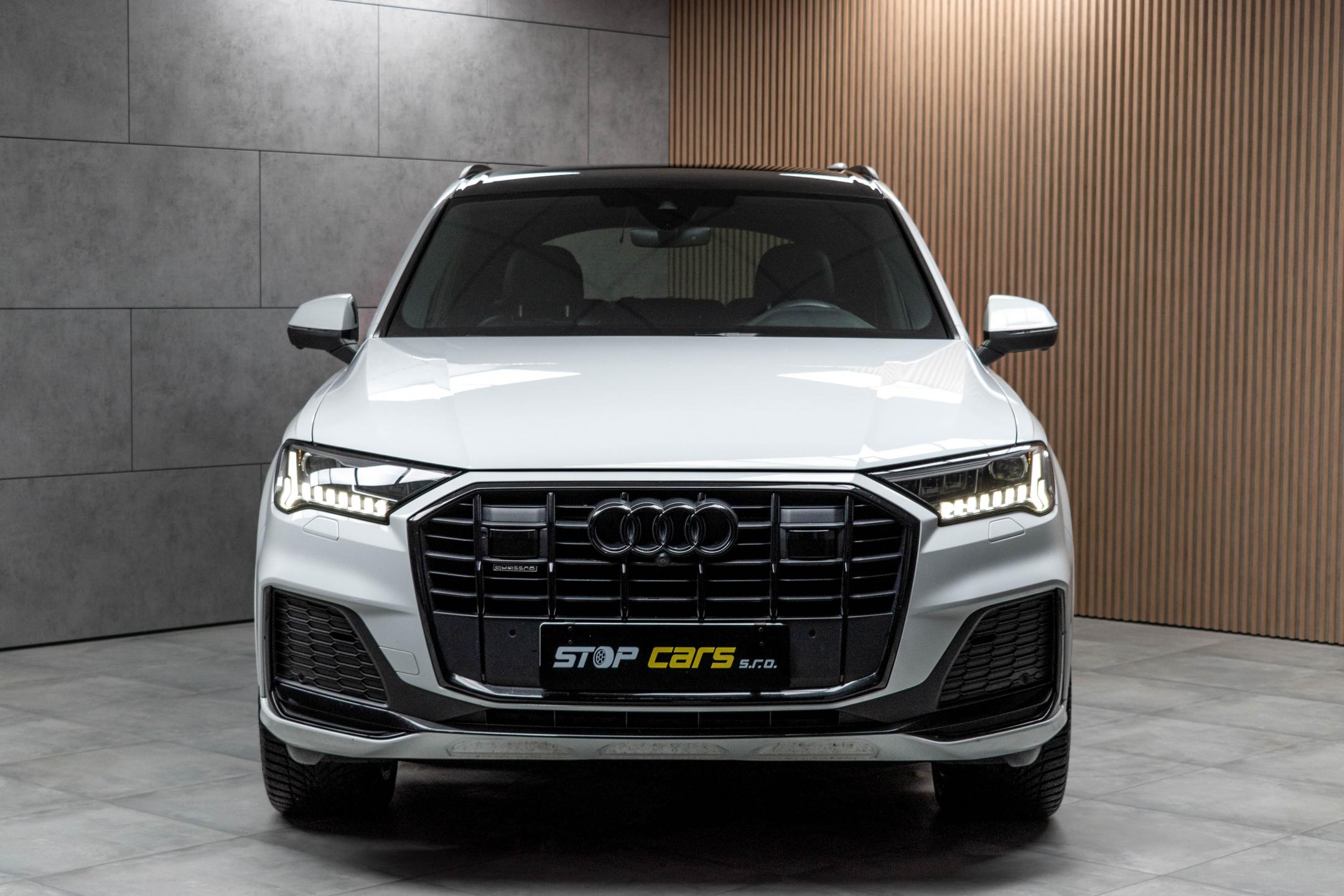 Vozidlo registrované jako nové v ČR, s možností odpočtu DPH. Pravidelně servisováno v AUDI Ros Brno, nyní po servisním intervalu. Historie vozidla prověřena společností CEBIA, na vyžádání lze zaslat Cebia report mailem. Z volitelné výbavy: Nezávislé topení/ventilace s dálkovým ovládáním, Asistenční paket 1, Asistenční paket Tour, Paket černé optiky a kruhy Audi a loga v lesklé černé barvě, Paket parkovacích asistenčních systémů, S line sportovní paket, Sedadla sportovní vpředu, Adaptivní pneumatický podvozek, Audi virtual cockpit plus, Dynamické řízení všech kol, Elektricky nastavitelná přední sedadla s pamětí pro sedadlo řidiče, Komfortní klíček s funkcí Safelock, Servomechanické dovírání předních a zadních dveří, Světlomety Matrix LED, Vnější zpětná zrcátka elektricky sklopná, automaticky zatmavitelná s pamětí, Čalounění sedadel v kombinaci Alcantara Frequenz/kůže, Dekorace z matného kartáčovaného hliníku, Multifunkční sportovní vyhřívaný volant, 3místné provedení zadních sedadel plus, Klimatizace 4zónová automatická, Komfortní středová loketní opěrka vpředu, Parkovací asistent, Audi smartphone interface, Zatmavená skla. Tato nabídka má pouze informativní charakter a neslouží jako podklad pro uzavření objednávky. STOP CARS s.r.o. si vyhrazuje právo uzavření všech smluvních vztahů písemně.
