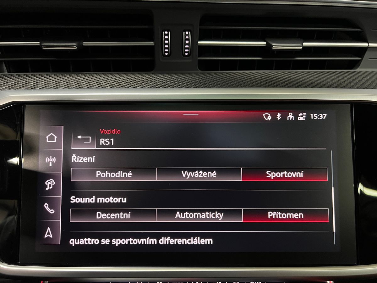 !!!VOZIDLO V PLNÉ TOVÁRNÍ ZÁRUCE 4ROKY/120.000 KM S MOŽNOSTÍ PRODLOUŽENÍ!!!MOŽNOST ODPOČTU DPH!!! ADAPTIVNÍ HD MATRIX SVĚTLOMETY S LED DENNÍM SVÍCENÍM, 8MI STUPŇOVÁ AUTOMATICKÁ PŘEVODOVKA S MOŽNOSTÍ MANUÁLNÍHO ŘAZENÍ POD VOLANTEM, KARBONOVÝ VOLANT, BEZKLÍČKOVÉ ODEMYKÁNÍ, ZAMYKÁNÍ A STARTOVÁNÍ KEYLESS, SATELITNÍ NAVIGAČNÍ SYSTÉM, BANG&OLUFSEN, 4-ZÓNOVÁ KLIMATIZACE, EL. OVLÁDANÉ PANORAMATICKÉ OKNO, APPLE CARPLAY/ANDROID AUTO, AUTOMATICKÉ DOVÍRÁNÍ DVEŘÍ SOFTCLOSE, AMBIENTNÍ OSVĚTLENÍ INTERIÉRU, HEAD UP DISPLEJ, AUDI PHONE BOX S MOŽNOSTÍ BEZDRÁTOVÉHO NABÍJENÍ, VYHŘÍVANÝ VOLANT, PŘEDNÍ SEDADLA EL. OVLÁDANÁ VYHŘÍVANÁ A ODVĚTRÁVANÁ S FUNKCÍ PAMĚTÍ, PŘEDNÍ A ZADNÍ PARKOVACÍ SENZORY, PARKOVACÍ ASISTENT, 360° KAMERA, ADAPTIVNÍ TEMPOMAT DO 280 KM/H, RS PERFORMANCE DESIGN PAKET, RS SPORTOVNÍ DIFERENCIÁL QUATTRO, RS KERAMICKÉ BRZDY BRZDY, RS SPORTOVNÍ VÝFUKOVÝ SYSTÉM. RS SPORTOVNÍ PODVOZEK S DYNAMIC RIDE, PAKET ČERNÉ OPTIKY, BODY KIT, PPF NA PŘEDNÍ ČÁSTI VOZU, 22 ALU DISKY AUDI SPORT