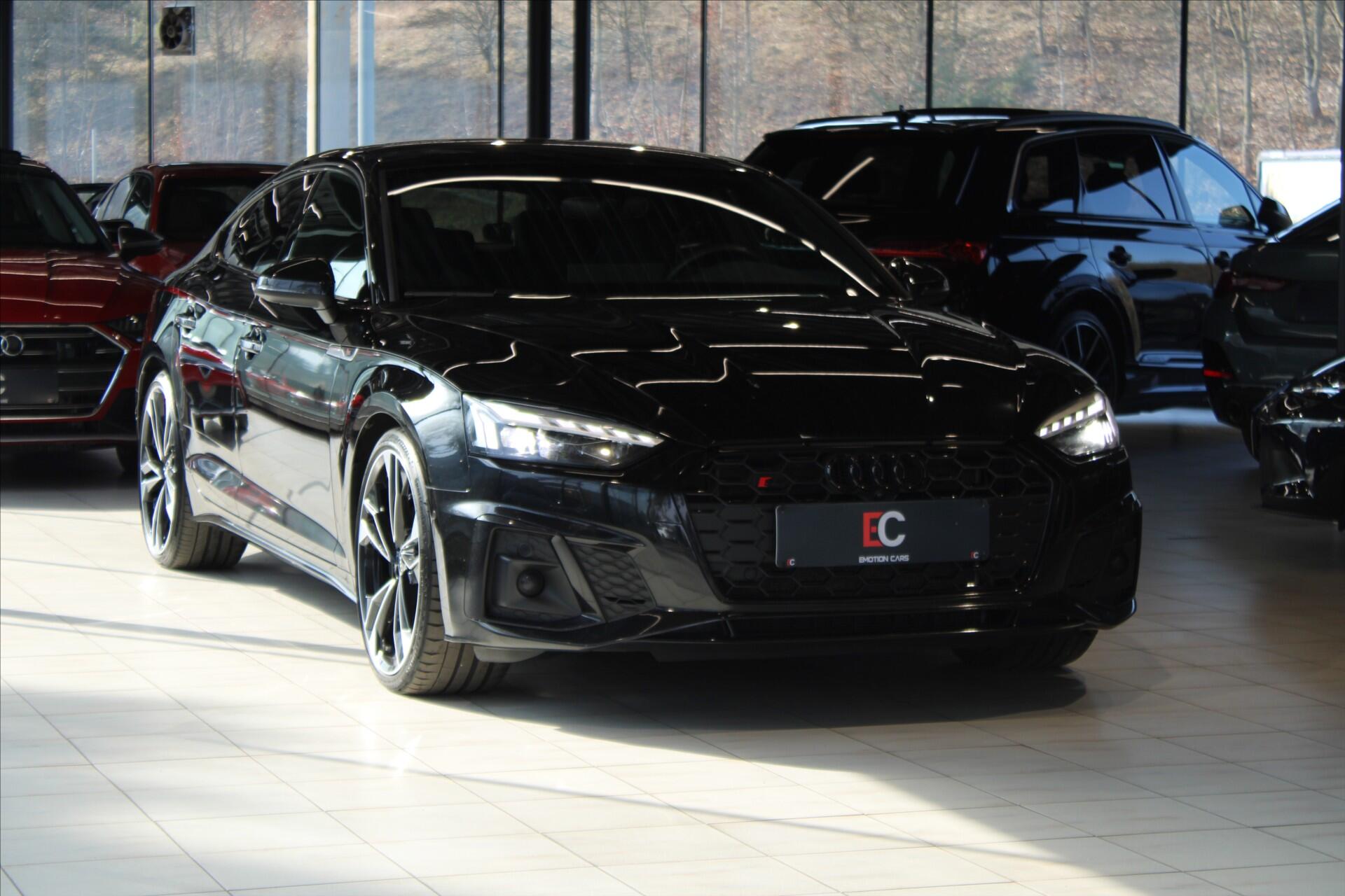 S5 quattro Sportback. Možnost plnohodnotné prodloužené záruky na 1 až 4 roky. Kompletní autorizovaná servisní historie. Poslední pravidelná servis ve 129542 km. Metalické lakování Mythos Black doplňuje Černý optický paket Plus, nádherná 20 originální litá kola Audi Sport a černě lakované brzdiče. Sportovní podvozek S. Matrix LED světlomety s laserovým světlem Audi a asistentem dálkových světel. 360° kamerový systém Area View a Asistent parkování. Tempomat. Active Lane Assist a Pre Sense. Rozpoznávání dopravních značek. Doporučení přestávky. Audi virtual cockpit Plus. Polokožený interiér s alcantarou Dinamica. Sportovní elektronicky nastavitelná vyhřívaná sedadla s masáží. Komfortní třízónová klimatizace. Nezávislé topení. Konturové ambientní osvětlení Plus. Pedály a opěrka nohy z nerezové oceli. Bezdrátové nabíjení pro smartphone. Audi Smartphone Interface (Android Auto / Apple CarPlay). Kompletní specifikaci výbavy, veškeré informace o historii vozu a detailní fotografie Vám rádi zašleme na vyžádání.