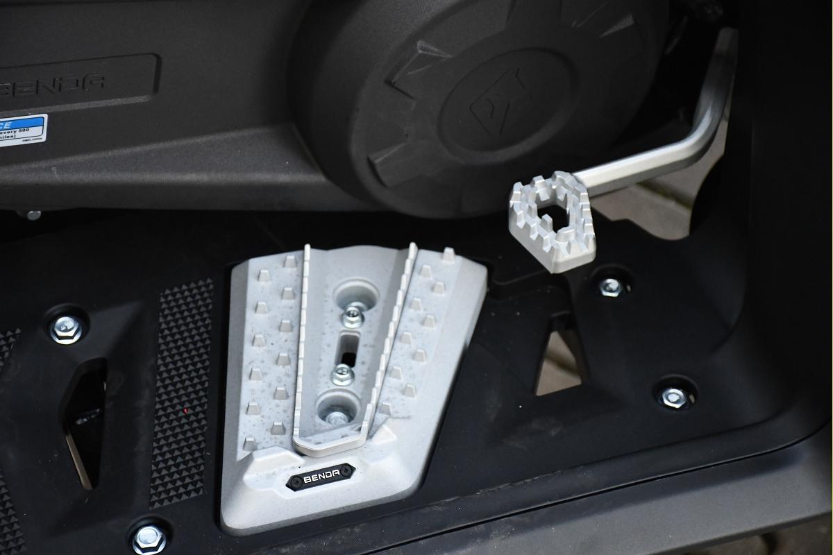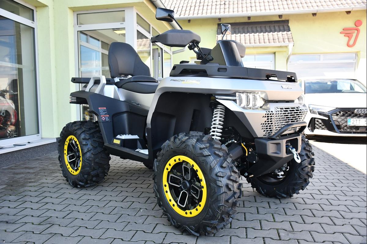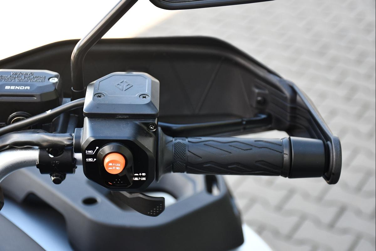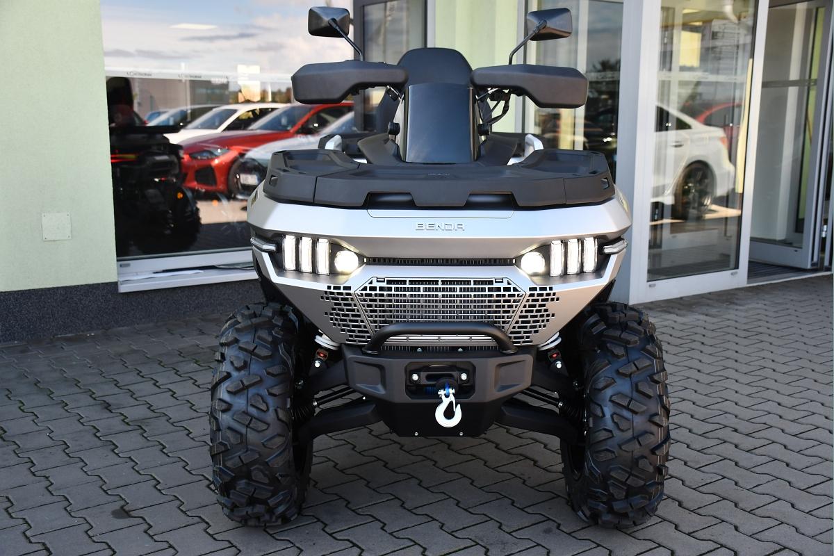 Pro ty, kdo chtějí absolutní špičku, je tady prémiový model. Získáš 14" hliníkové ráfky s Beadlock systémem, který zabraňuje uvolnění pneumatiky v extrémních podmínkách. Nylonové lano u navijáku (3500 lb) je lehčí a bezpečnější než ocelové. Start jedním tlačítkem ti ušetří čas a zpříjemní startování. Samozřejmostí jsou TFT displej, 26" pneumatiky Wanda, plynové tlumiče, zadní uzávěrka diferenciálu, elektronický plyn, motorová brzda a mechanická parkovací brzda. Tento model je určen pro náročné terény, profesionální použití i opravdové dobrodruhy. Výbava: EPS (elektrický posilovač řízení) 14" hliníkové ráfky + Beadlock TFT displej 26" pneumatiky Wanda Naviják s nylonovým lanem 3500 lb Tažná koule Cvtech Ocelový nosič + plastový nosič Přední nárazník Chránič řídítek Plynové tlumiče LED světla Startování jedním tlačítkem Elektronický plyn Mechanická parkovací brzda Zadní uzávěrka diferenciálu Motorová brzda TBOX OBJEM 500 cm3 VÝKON 48 HP MAXIMÁLNÍ TOČIVÝ MOMENT 46 Nm/5500 ot. Pohon Volitelný pohon 2WD/4WD s uzávěrkou diferenciálu TYP SOHC, 4-taktní V-Twin PALIVOVÝ SYSTÉM EFI CHLADÍCÍ SYSTÉM Kapalina Pneu přední 26 x 9 x 14 Pneu zadní 26 x 11 x 14 Brzdy Duální kotoučové brzdy 220 mm PŘEDNÍ ODPRUŽENÍ Dvojité A-rameno se stabilizátorem, zdvih 230 mm, Nastavitelný plynový tlumič ZADNÍ ODPRUŽENÍ Nastavitelný plynový tlumič, Nezávislé torzní vlečené rameno, zdvih 250 mm Kolo zadní Hliníková slitina, 14" Kolo přední Hliníková slitina, 14" Rozměry (D x Š x V) 2365x1245x1450mm mm Rozvor 1500 mm Suchá hmotnost 425 kg palivová nádrž 30 l Světla výška 305 mm Výška sedadla 950 mm Tažná kapacita 697 kg