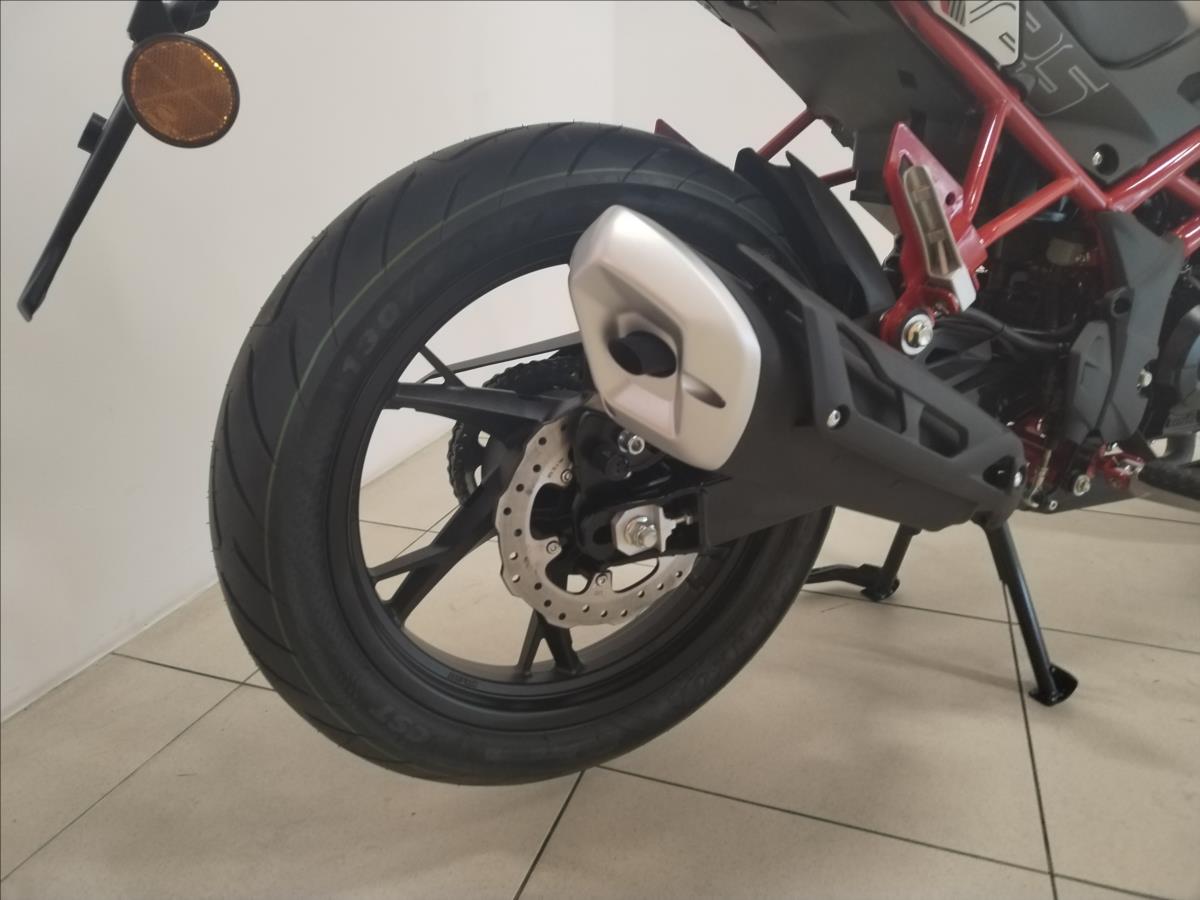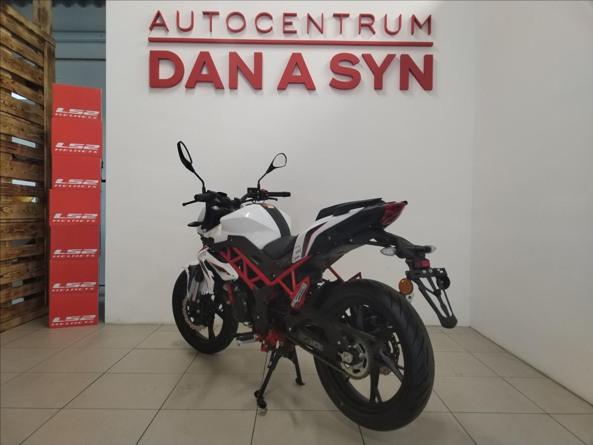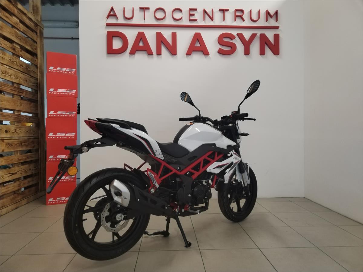 VYUŽIJTE NAŠE VÝHODNÉ FINANCOVÁNÍ. ZÁRUKA 4 ROKY Stroj na objednávku! Další dostupné barvy: černá, červená, zelená, šedá Jsme autorizovaný prodejce motocyklů Benelli. Nabízíme záruční i pozáruční servis. Typ motoru:Vzduchem a olejem chlazený, čtyřdobý, jednoválec, čtyřventil Zdvihový objem:125 cm3 Max. výkon:8,2 kW (11,1 Cv) @ 9500 ot./min Rozměry (D x Š x V):2050 x 810 x 1065 Rozvor:1360 Výška sedla:780 Objem nádrže:13,5l Pohotovostní hmotnost:142 kg
