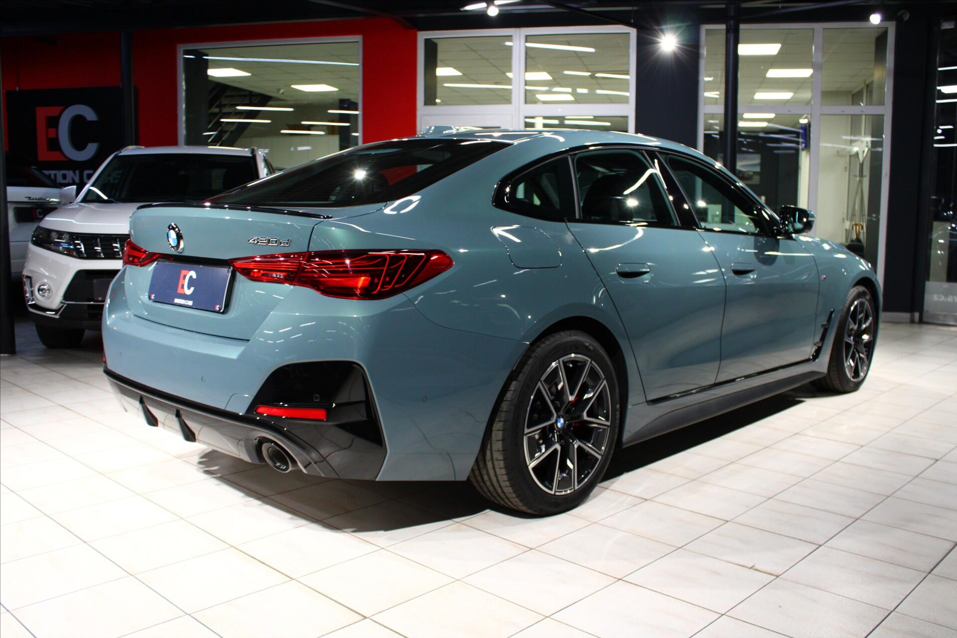 M Sport xDrive GranCoupe. Možnost plnohodnotné prodloužené záruky na další 1 až 4 roky. Záruka výrobce do 05/2028. Výrazná metalíza Cape York Green kombinovaná s originálními 18 disky Aerodynamic 858M a černými lištami M Shadow line. M Sportovní Paket PRO. M Sportovní podvozek. M Sportovní brzdy červené s vysokým leskem. M zadní spoiler. Adaptivní LED světlomety M Shadow Line s asistentem dálkových světel. Driving Assistant Plus. Systém parkovací asistence Plus s 360° Surround View. Sprotovní převodovka s pádly pod volantem. Keyless-Go. Interiér M PerfomTex s hliníkovým dekorem a antracitovým stropem. Sportovní vyhřívaná sedadla. M sportovní volant a bezpečnostní pás. Třízónová klimatizace. BMW Live Cockpit Professional. Bezdrátové nabíjení pro smartphone. Kompletní specifikaci výbavy, veškeré informace o historii vozu a detailní fotografie Vám rádi zašleme na vyžádání.