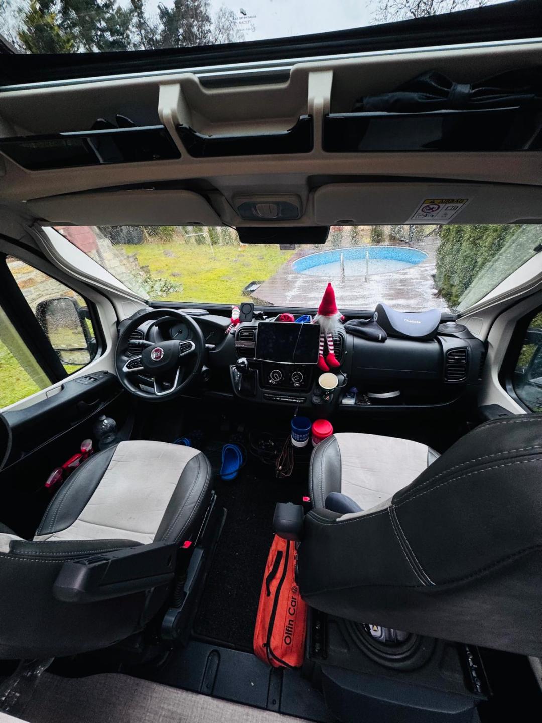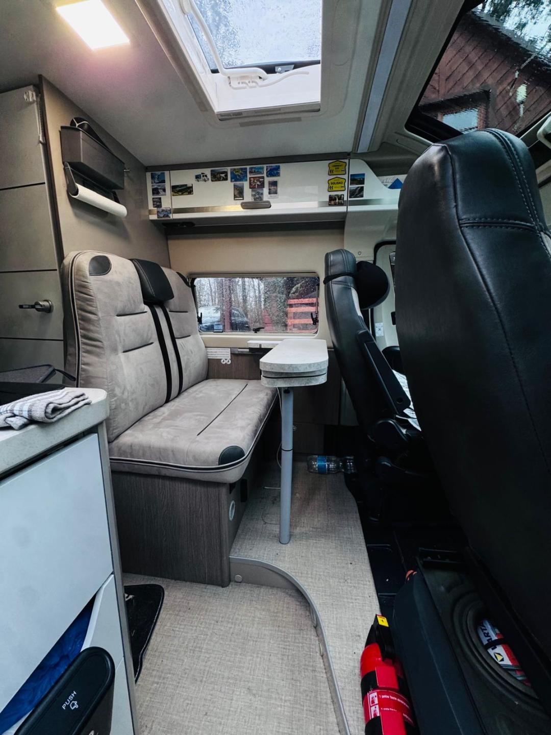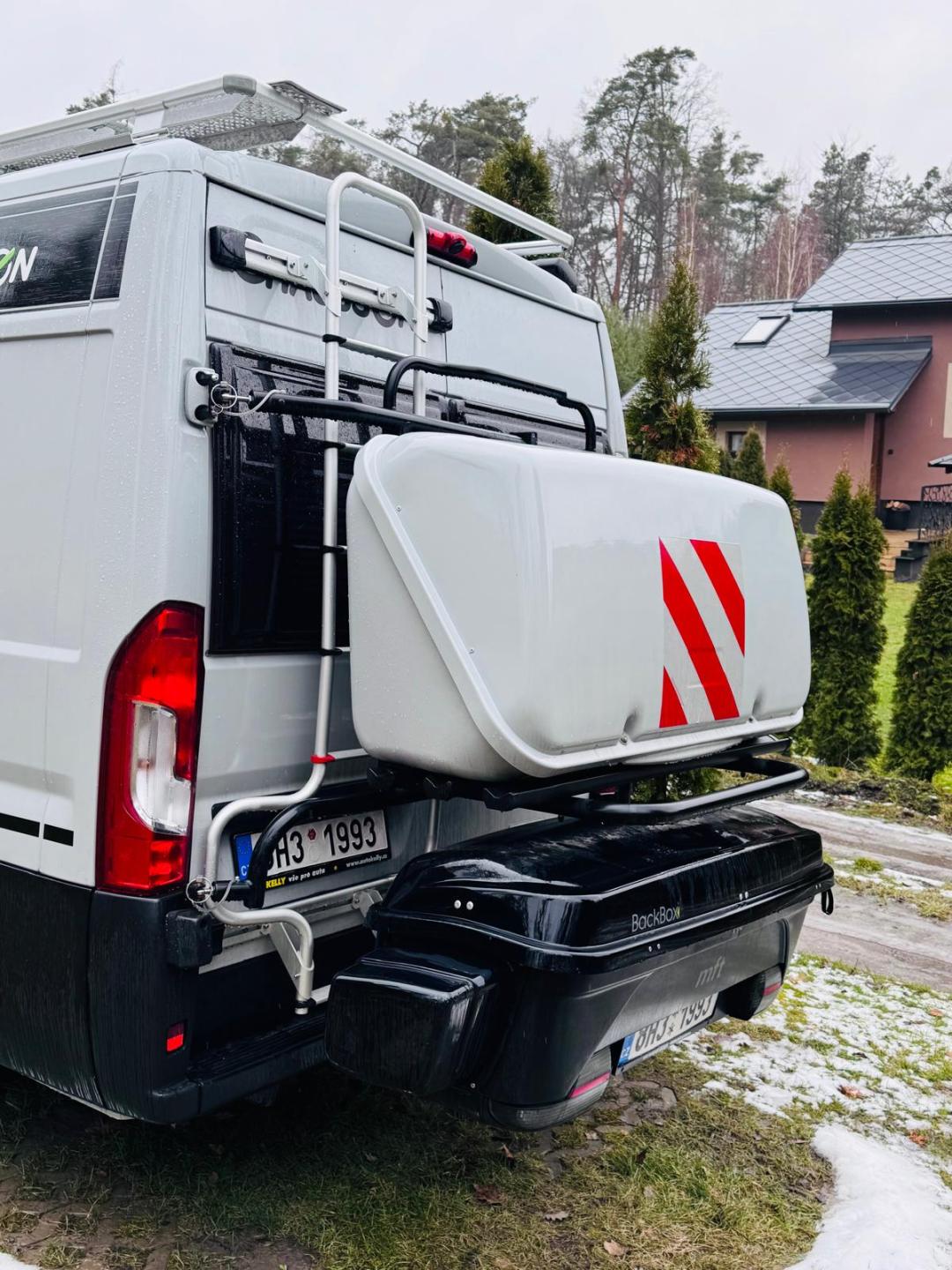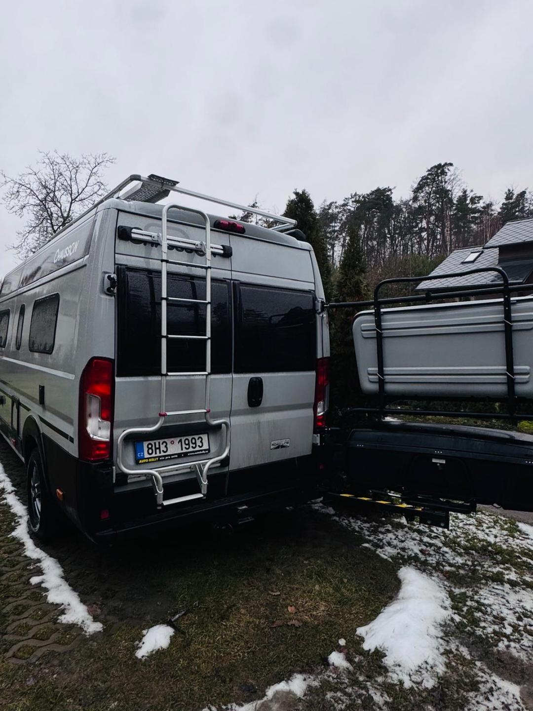 plynový vařič 2x hořák, lednice, WC a sprcha oddělitelná, dvě nadstavbové baterie (standart 1ks) (s motorovou dohoromady 3 baterie), (DC konvektor - nabíjení baterií za jízdy), solární panel, elektrický satelit (automatické vyhledávání), TV, nadstandartní 2 nádrže na vodu (standart je 1 nádrž), přípojka plynu na gril venkovní, tažné zařízení s výsuvným ramenem (v případě upevnění boxu je pomocí ramene možné otevřít zadní dveře), nosič kola - boxu na celé zadní dveře s možností vyklopení do strany tak aby bylo možné otevřít zadní dveře,
