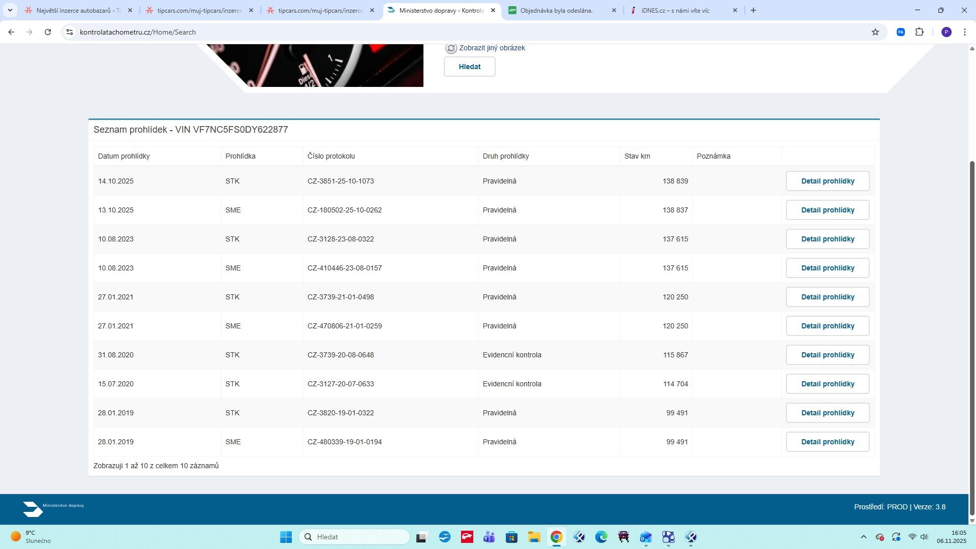 | Historie | Zobrazit historii vozu |