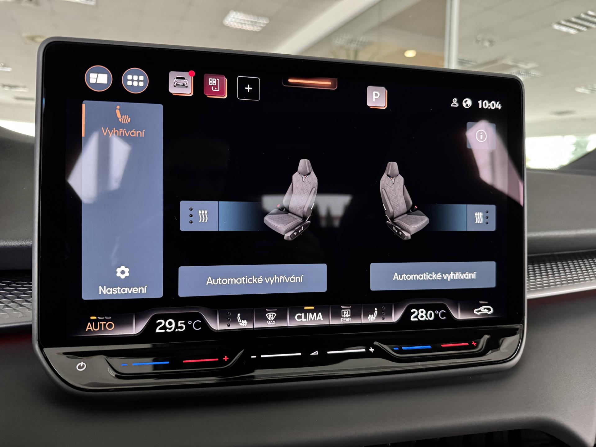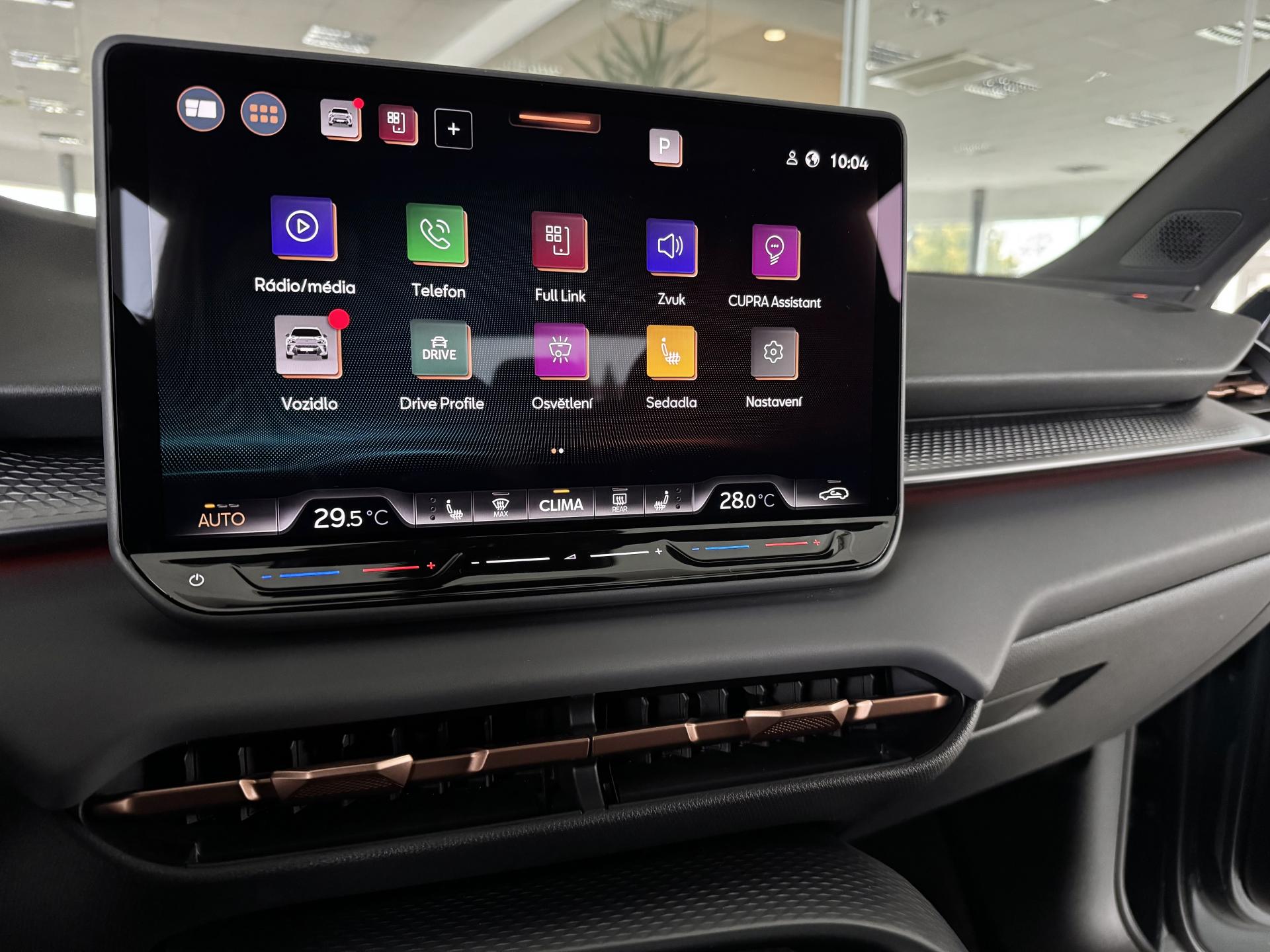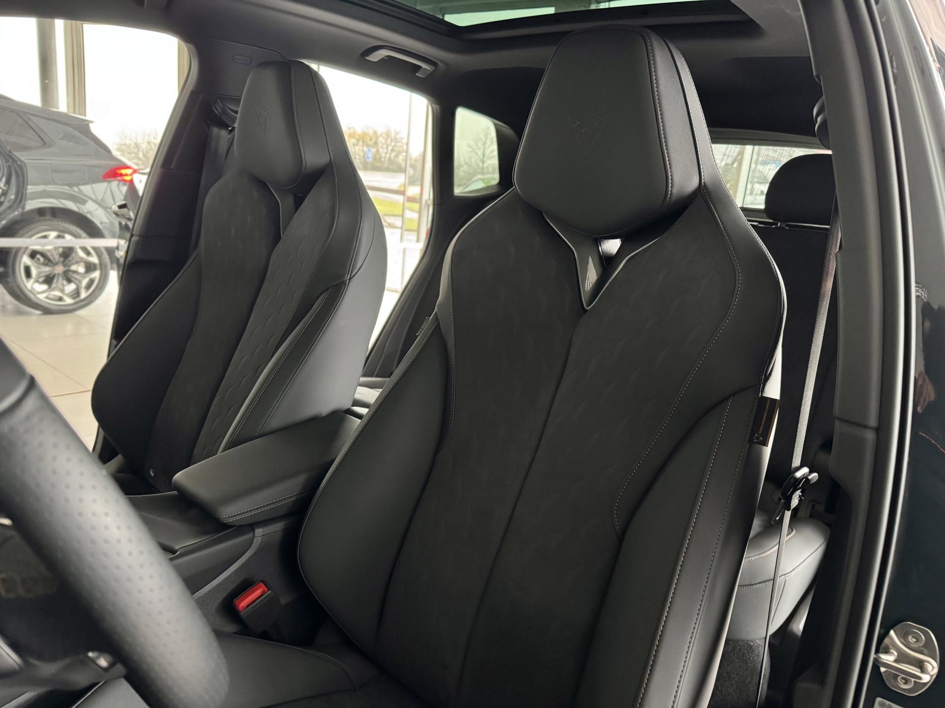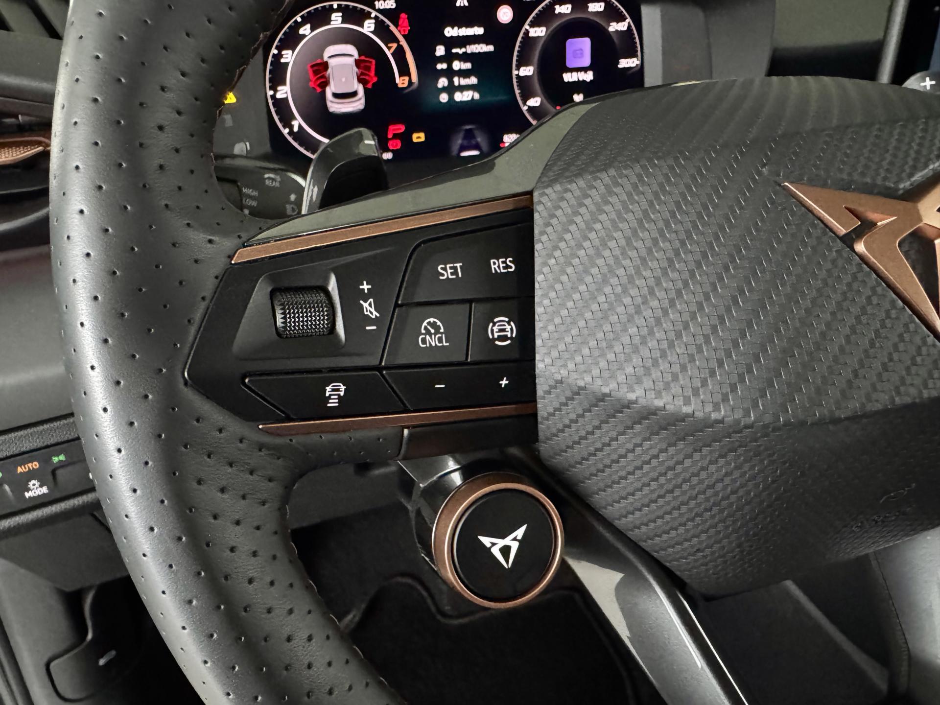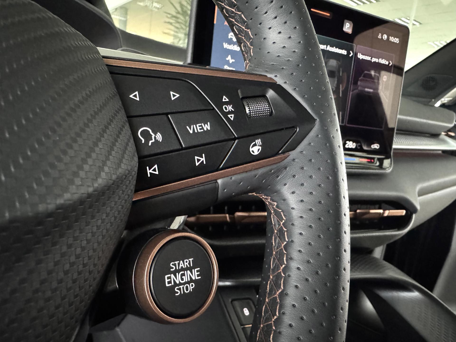 Stav nového vozu, plná tovární záruka do 04/2028. Pořizovací cena nového vozu 1.56mil. Kč. Nejsilnější motorizace o výkonu 195kW, pohon všech kol, Matrix LED přední světlomety, adaptivní tempomat, asistent jízdy v pruzích, parkovací kamera + senzory vzadu i vpředu, panoramatické střešní okno, navigační systém 12,9" s Cupra Connect včetně funkce Apple car play a Android auto, digitální přístrojový štít plus, bezklíčové odemykání a startování, 3-zónová aut. klimatizace, sportovní vyhřívaná el. stavitelná sedadla v provedení kůže/alcantara, paměťová funkce sedadla řidiče, sportovní vyhřívaný multifunkční volant s řazením pádly, ambientní osvětlení interiéru, prémiový audiosystém Sennheiser, zatmavení zadních oken, el. víko zavazadelníku, 19" orig. kola z lehkých slitin. Více na tel. +420 605 099 999.