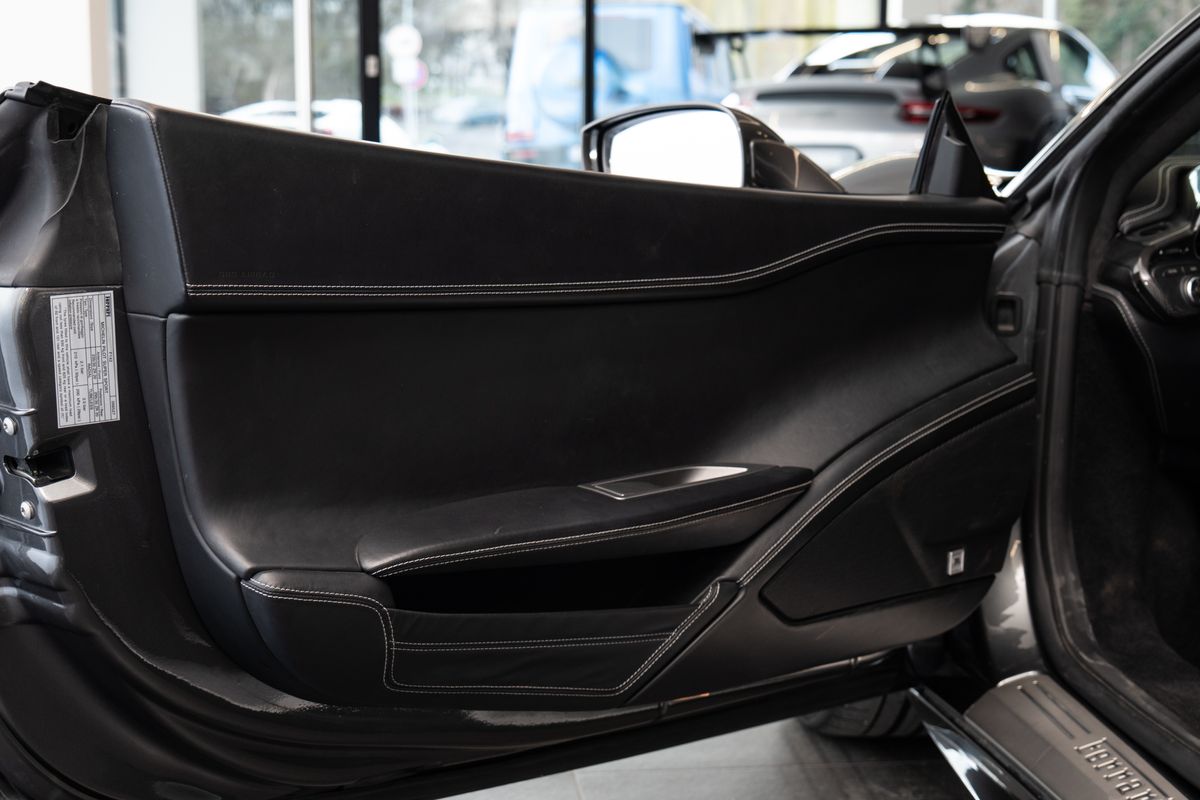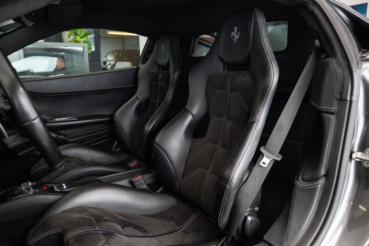 Číslo inzerce CE.xxx.2417, EXTC – Barva exteriéru – Grigio Silverstone AFS1 – Systém AFS (adaptivní přední světlomety) ALIH – Čalounění stropu v Alcantaře CALY – Žluté brzdové třmeny CRPK – Carbon Fibre Racing Package (závodní karbon paket) CRPT – Barva koberců – Nero (černá) HAW1 – Tepelně izolační čelní sklo INTC – Barva interiéru – Nero (černá) IPOD – Připojení iPod LOGO – Znaky Scuderia Ferrari na blatnících MIR2 – Vnitřní/vnější elektrochromatická zrcátka NAVC – Navigační systém + Bluetooth PAC1 – Parkovací kamera PAR2 – Přední a zadní parkovací senzory RMSV – 20 kovaná kola RPMY – Žlutý otáčkoměr RSCH – Karbonová závodní sedadla – velikost Large SHF1 – Kožená zadní police SNDB – Hi-Fi audio systém High Power STC1 – Barevné standardní prošívání – Grigio Scuro (tmavě šedá) UALZ – Horní část interiéru v Alcantaře