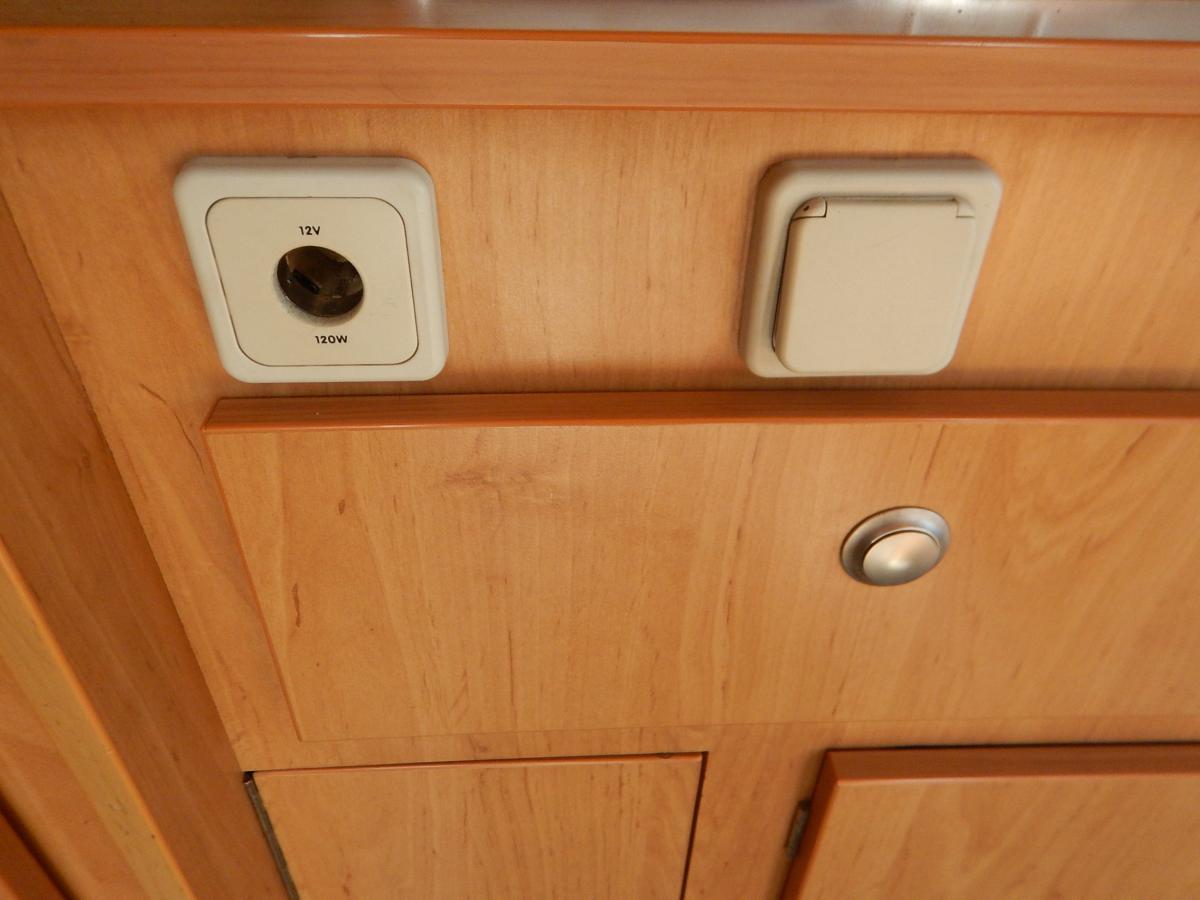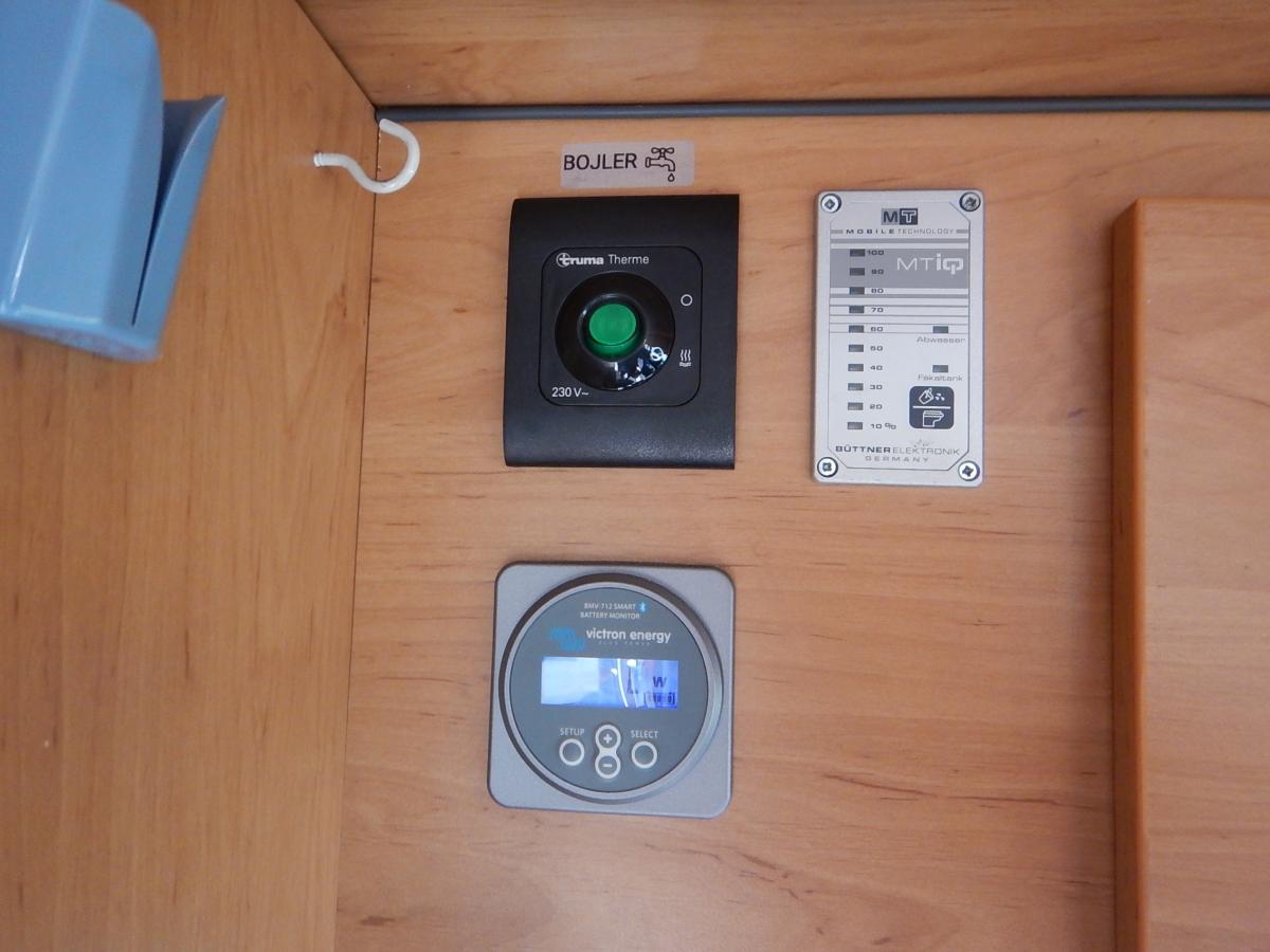 Vnitřní a venkovní sprcha, WC, solární systém s měničem, baterie 190 Ah, kontrola solárního systému přes aplikaci VICTRON Conect. Lednice kompresorová, vzduchové měchy, plynový vařič, dřez, rozvod 12V, 3 x USB, přídavné světlo LED BAR, zpětná kamera, projektor ANDROID, bluetooth. Nová spojka.
