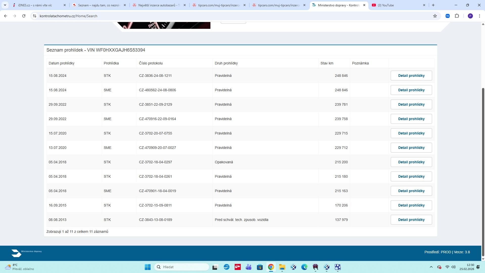 | Historie | Zobrazit historii vozu |