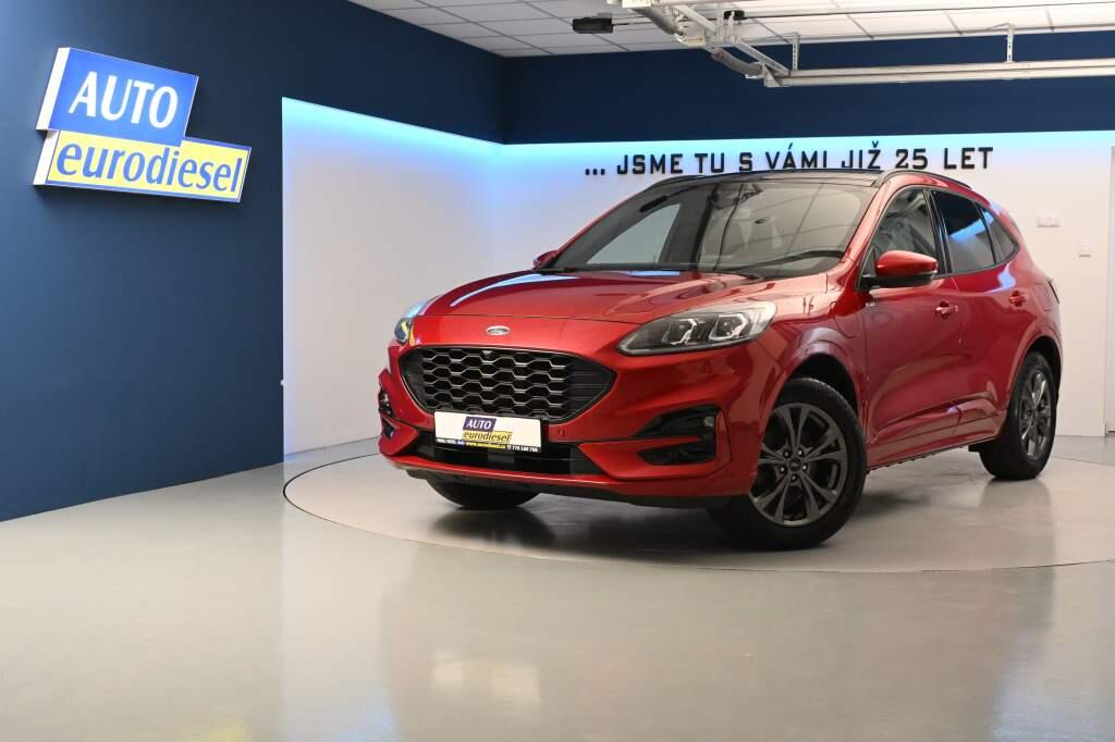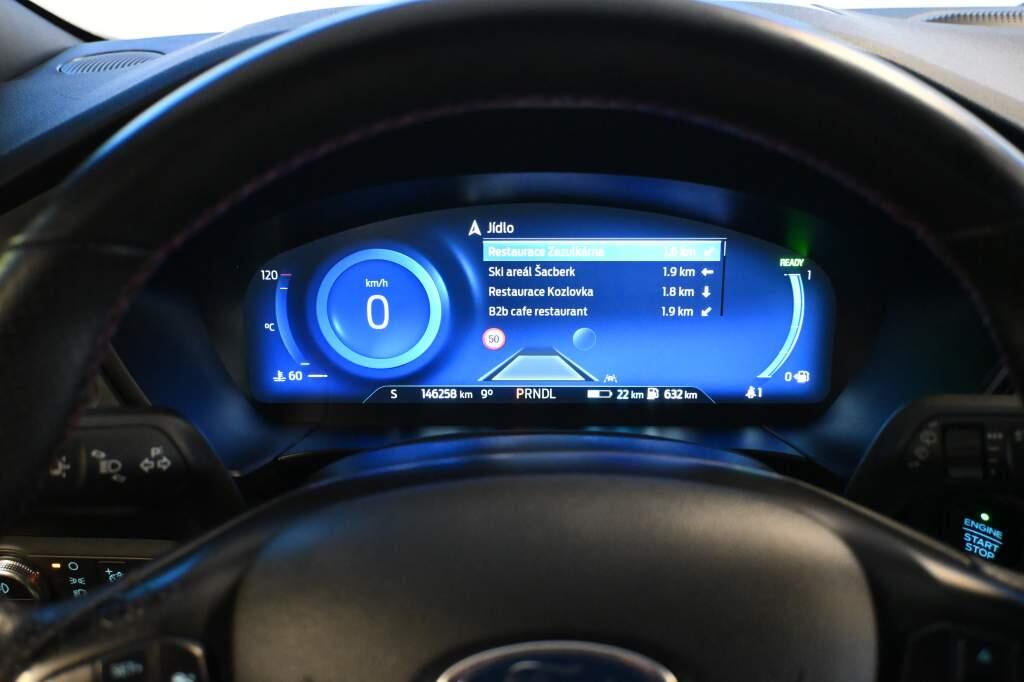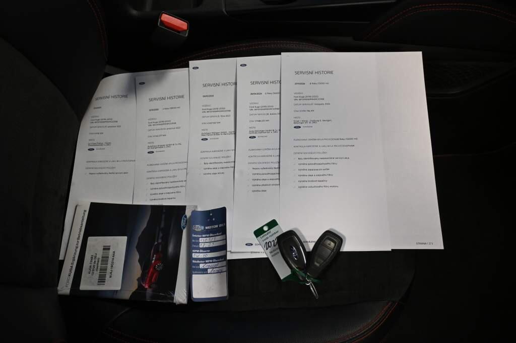 Pravidelný servis Ford, Lucid Red metalíza, navigační systém Ford Sync 3.4, couvací kamera + přední kamera Split View, ACC adaptivní tempomat + Pre-Collision Assist (asistent nouzového brzdění), Android Auto + Apple CarPlay, černá stropnice, panoramatická střecha, LED světlomety, Virtual Cockpit, 18 originální ALU kola, Winter-Paket 2 (vyhřívaná zadní sedadla + volant), Technologie Paket, prémiový sound system Bang Olufsen (560 W), elektricky ovládané víko kufru + kopací senzor, USB + USB-C, Key-Free, Head-Up displej, výběr jízdních režimů, FordPass Connect, cena 1 230 000 Kč