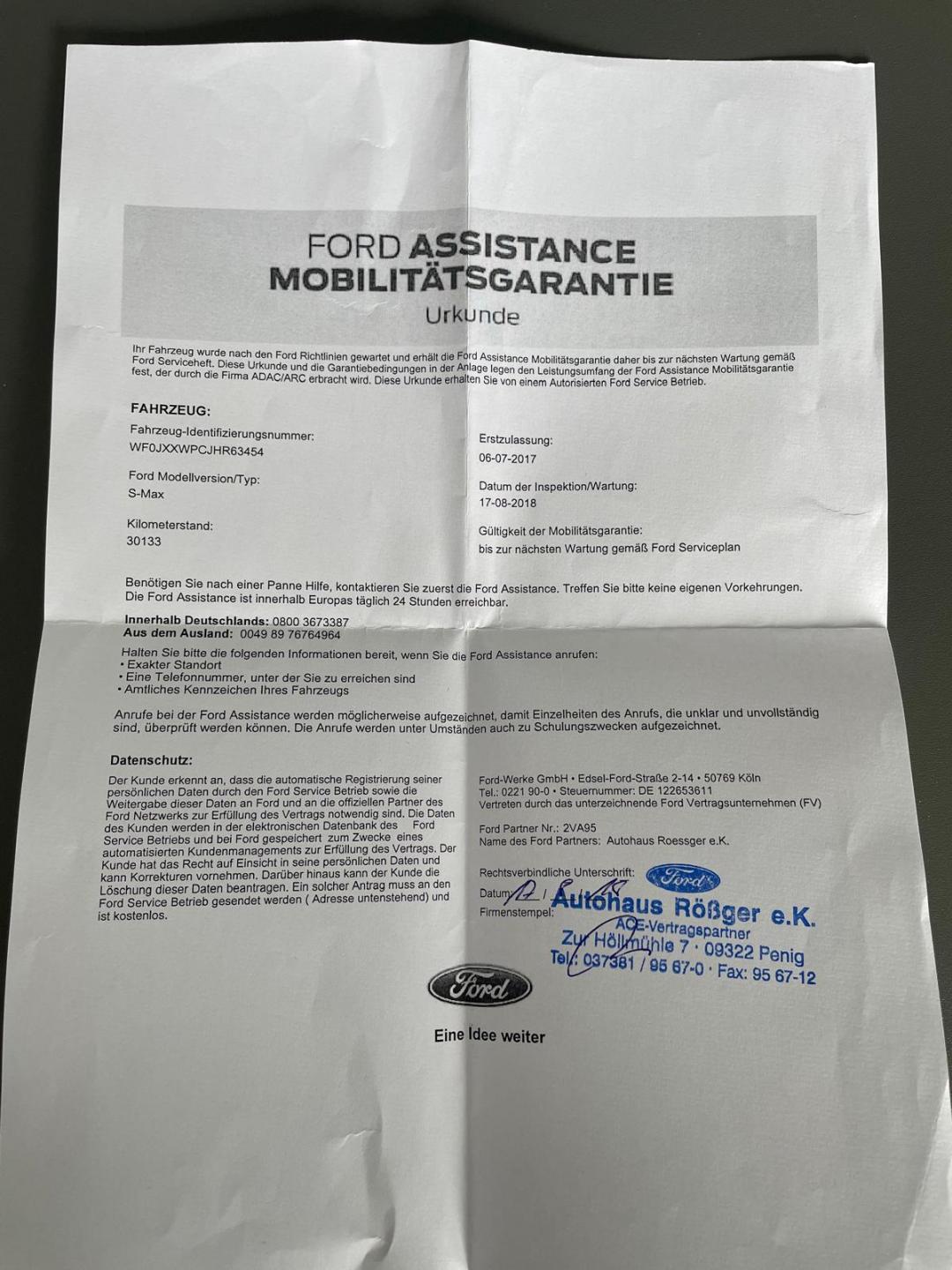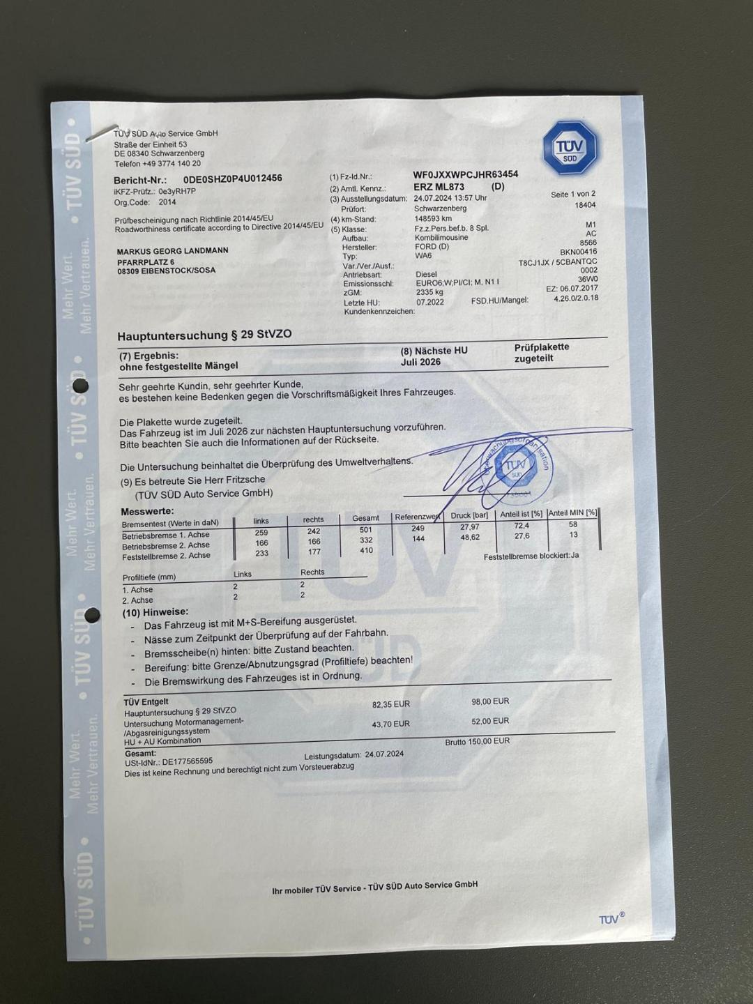 VIN:WF0JXXWPCJHR63454; Země původu Německo; po 1. majiteli; GARANCE UJETÝCH KM-doloženo kompletně vedenou servisní historií vedenou v autorizovaném servisu FORD; Bohatá výbava TITANIUM: FORD CONVERS+(digitální přístrojový štít-barevný displej na palubní desce); Dvouzónová digitální automatická klimatizace; plný WINTERPAKET: VYHŘÍVANÉ ČELNÍ SKLO+VYHŘÍVANÉ SEDAČKY+VYHŘÍVANÁ zrcátka+ESP(elektronická stabilizace podvozku); kožené sedadla v kombinaci se středy z broušené kůže (Alkantara); 4x el. stahovatelná okna; el. stavitelná+el. sklopná zrcátka; kožený MULTIFUNKČNÍ VOLANT; TEMPOMAT; parkovací senzory vpředu i vzadu + parkovací kamera 360°; elektricky sklopné TAŽNÉ ZAŘÍZENÍ; HOLD ON-systém přibrzdění při rozjezdu do kopce; systém AUTOMATICKÉHO parkování; hlídání jízdních pruhů; KEYLESSGO-bezklíčkové odemykání+startování tlačítkem; SOUND+MULTIMÉDIA systém orig. FORD s barevným dotykovým displejem, DAB rádiem, NAVIGACÍ, výstupy USB; BLUETOOTH konektivitou vč. HANDSFREE; barevný palubní počítač; roletky na zadních oknech; chrom HAGUSY; el. sedadla + řidičova sedačka s možností nastavení paměti sedačky; měnič 230V; Technicky i motoricky v perfektním stavu; Karoserie ve velmi čistém stavu; Interiér NEKUŘÁK bez známek opotřebení; DOŽIVOTNÍ ZÁRUKA NA PRÁVNÍ PŮVOD A NAJETÉ KM. Záruka 1 rok na motor a převodovku.