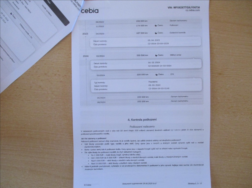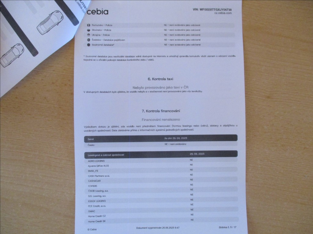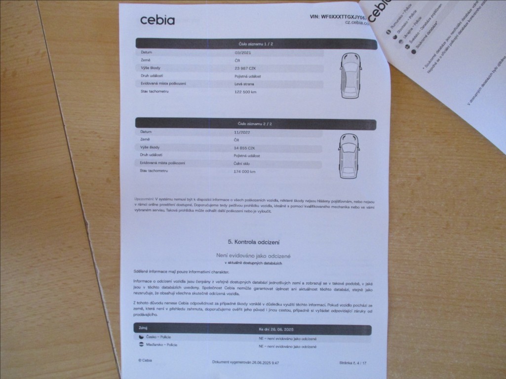 Protokol Cebia + 4 x letní pneu v ceně vozidla