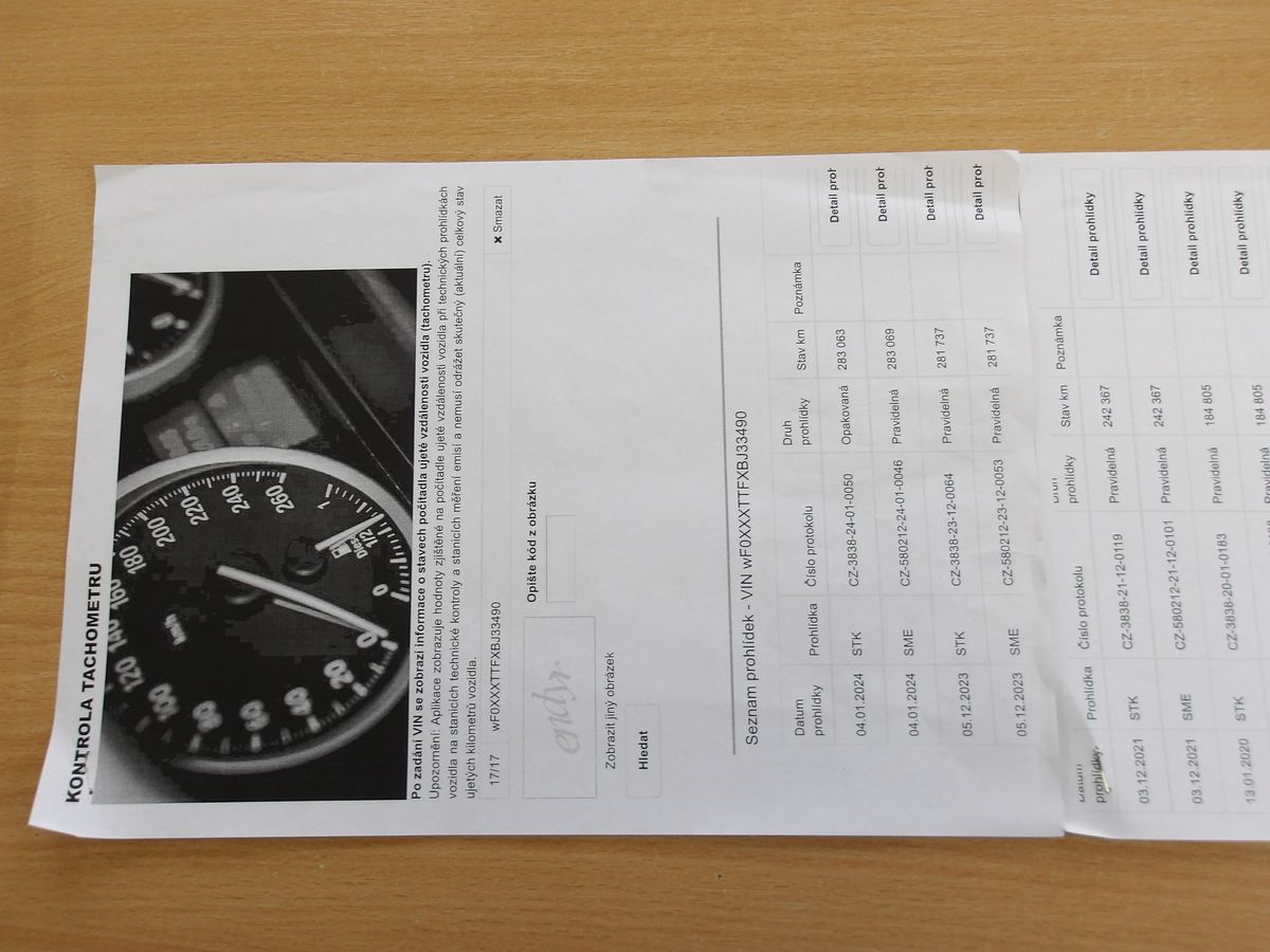 | Tachometr | 285001 km |
