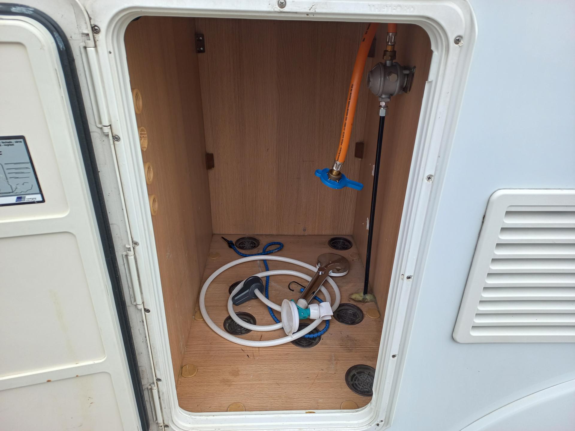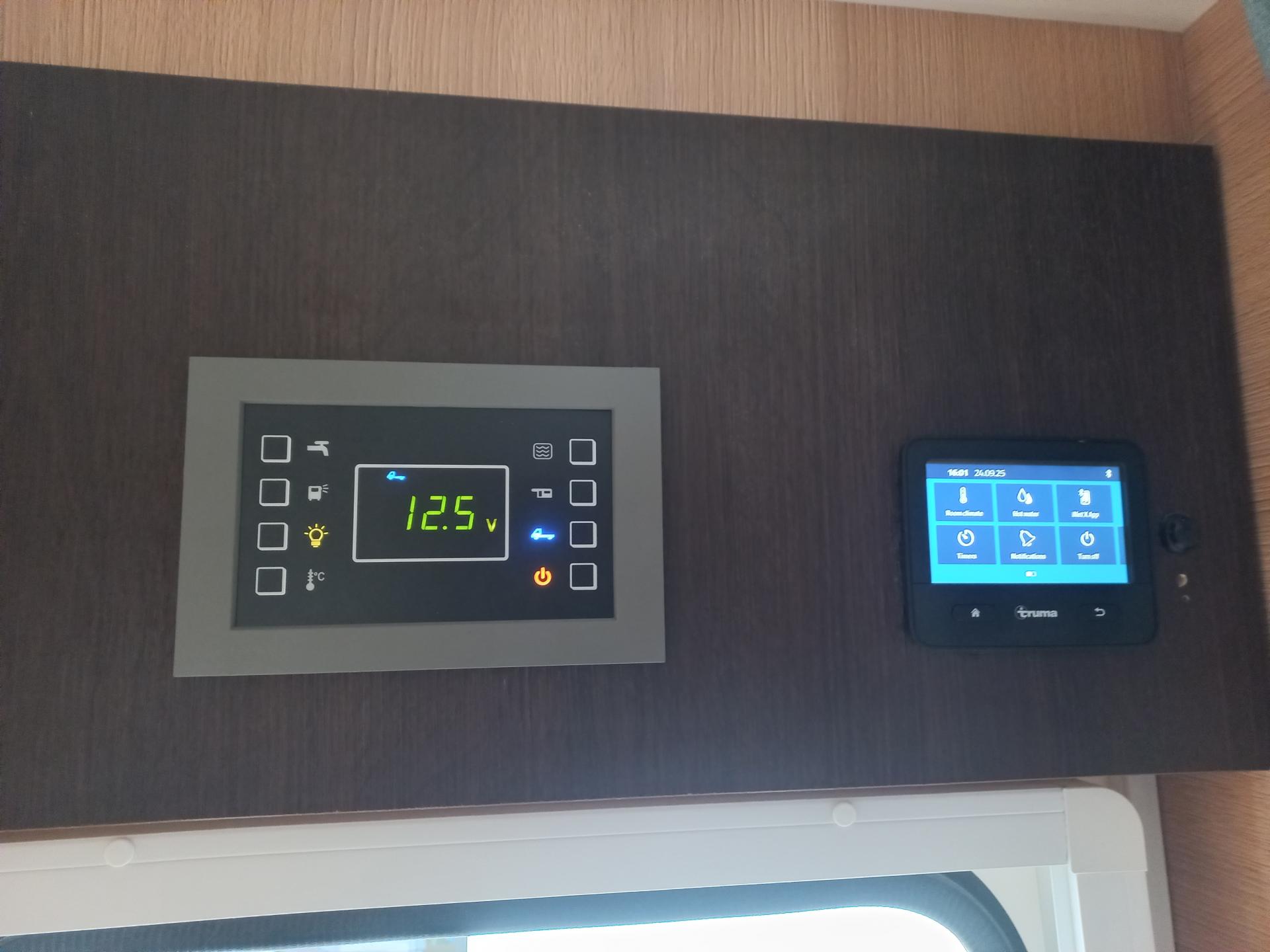 el. přípojka, topení Trumatic - plyn, lednice, kombinovaná, sklokeramická varná deska, klimatizační a topná jednotka, venkovní sprcha, roletky, nádrže na vodu, 2x solární panel, rozměry: D-6.990mm, Š-2.350mm, V-3.200mm, povolená hmotnost: 3.500kg, provozní hmotnost: 2.889kg.