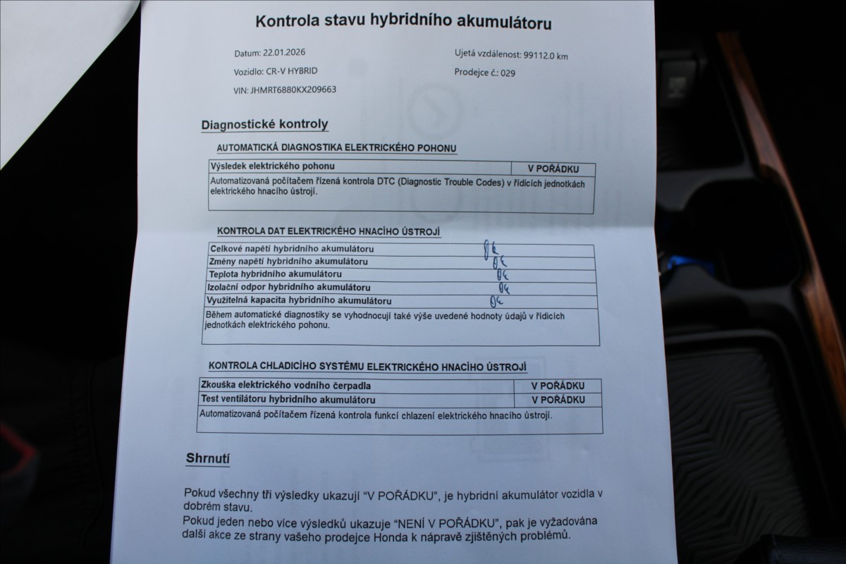 Vůz zakoupen jako nový v ČR, po 1. majiteli. Možný odpočet DPH. Najeto 99946 km s doloženou servisní historií HONDA. Hybridní benzinový motor 2.0i-MMD/107kW s automatickou převodovkou a pohonem 4X4. Bohatá výbava EXECUTIVE včetně adaptivního tempomatu, kožených vyhřívaných sedadel, parkovací kamery, FULL-LED světlometů, el. víka zavazadlového prostoru, head-up displeje, volby jízdního režimu, bezklíčového přístupu, tažného zařízení, vyhřívaného čelního skla a mnoho dalšího.
