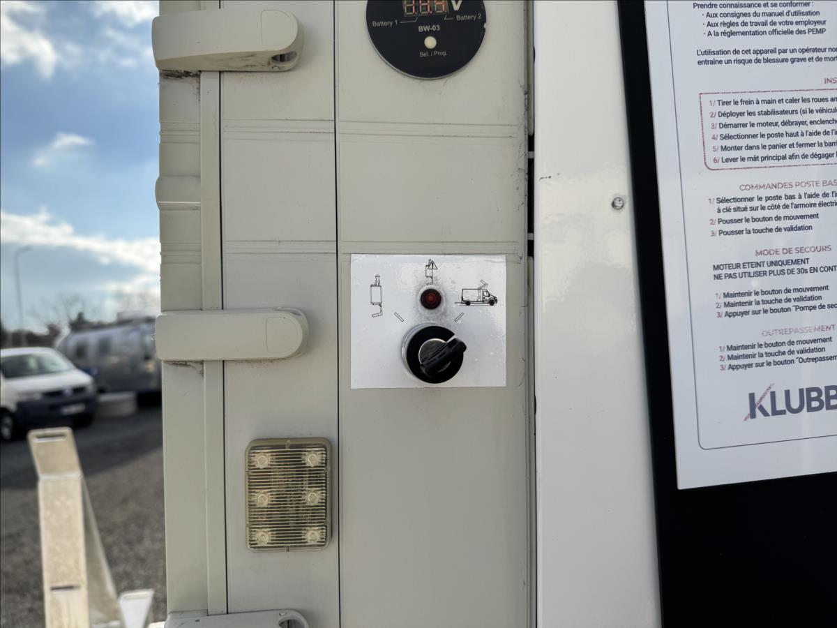 ** Odpočet dph * Plošina KLUBB K26 * Maximální pracovní výška ramene přibližně 11 m * Tlačítko PTO k přenosu hnací síly * Střešní výstražné majáky * Zásuvka 220V v pracovním koši * Hydraulické opěrné nohy * Měnič napětí * Odpružené sedadlo řidiče * Multifunkční volant, tempomat, jízdní režim city * palubní počítač, manuální 6st. převodovka, navigace, aux, bluetooth, usb, zadní parkovací senzory, parkovací kamera ** Pravidelný servis. K vozidlu možno pořídit prodlouženou záruku až na 3 roky bez omezení počtu najetých kilometrů. Možnost výhodného úvěrového financování. Podrobné informace na tel.č. 728 666 111, 728 666 333.
