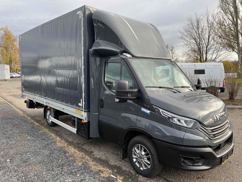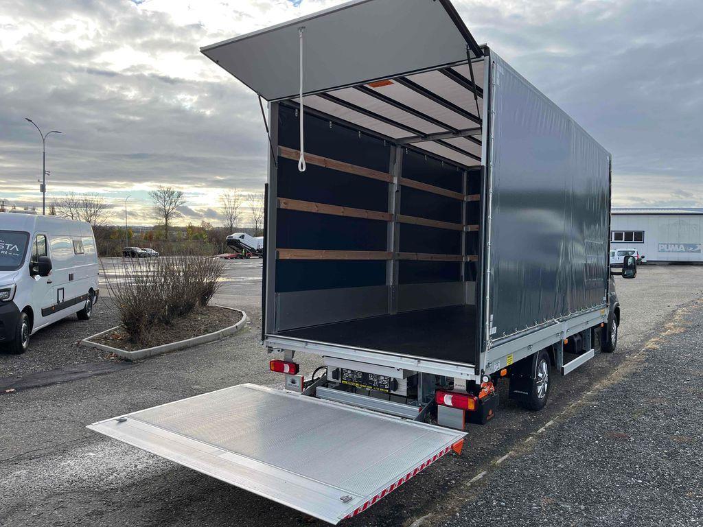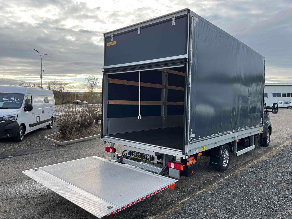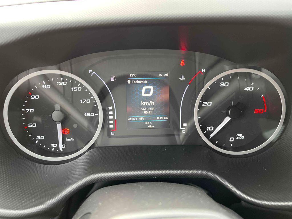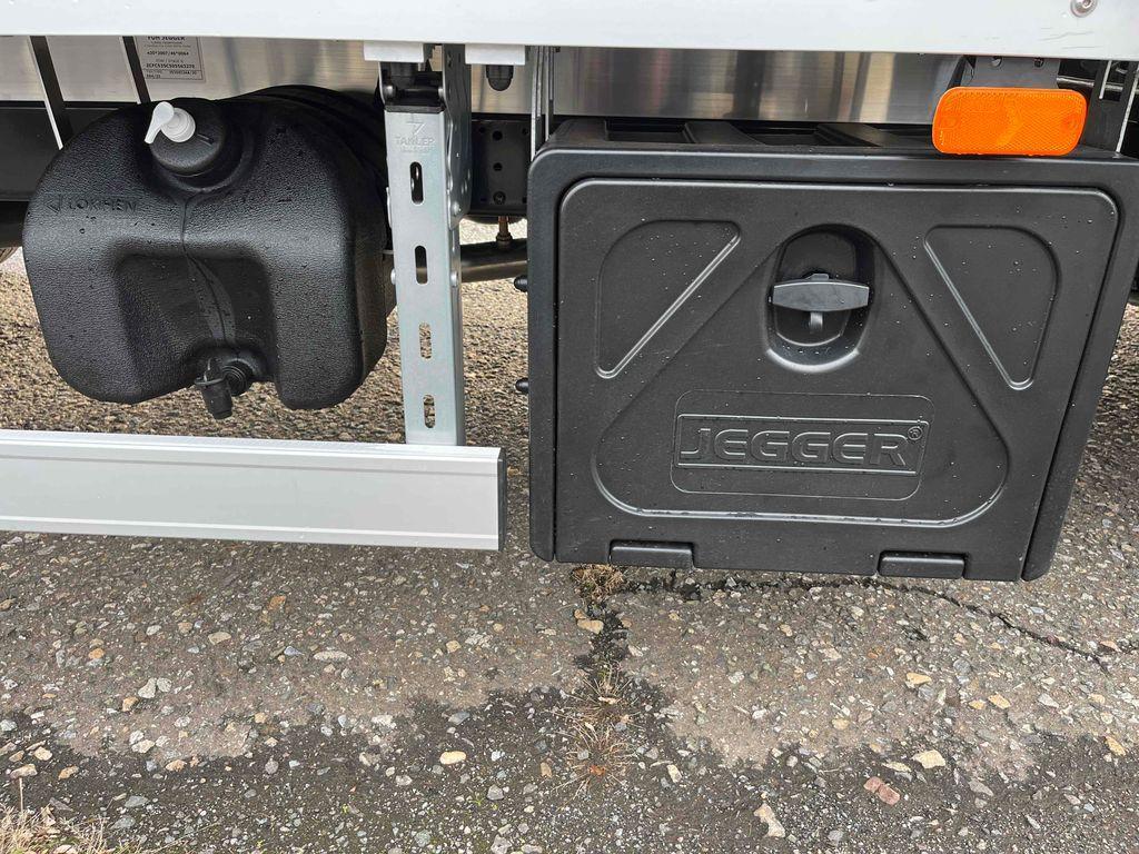 10 palet s rozměry délka 485cm, šířka 220cm, výška 230cm, hydraulické čelo Dhollandia 750kg, levý shrnovací bok, vzduchové odpružení s manometry - dvouokruhové, kotvící oka zapuštěná v podlaze, box na nářadí, nádrž na vodu. 100l palivová nádrž, FULL LED světlomety, automatická klimatizace, kožený multifunkční volant, odpružená sedačka řidiče. Záruka dva roky bez omezení kilometrů od data registrace.