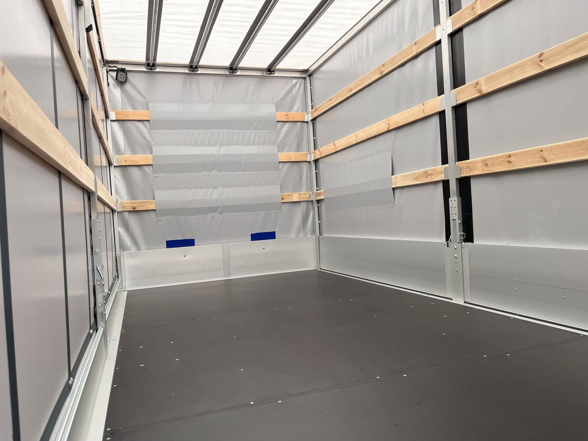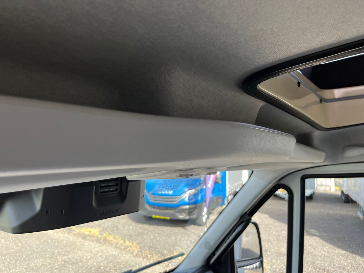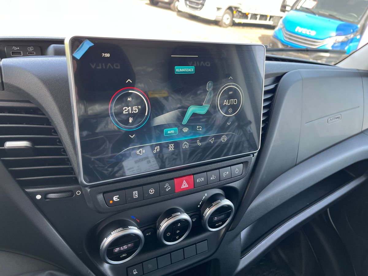 Nový model Iveco Daily 3.0 s plachtovou nástavbou na 10 palet s rozměry délka 500cm, šířka 220cm, výška 230cm. Spaní. Nezávislé topení. Levý shrnovací bok. Vzduchové odpružení s manometry - dvouokruhové. Parkovací senzory. Box na nářadí, nádrž na vodu s nádobkou na mýdlo.