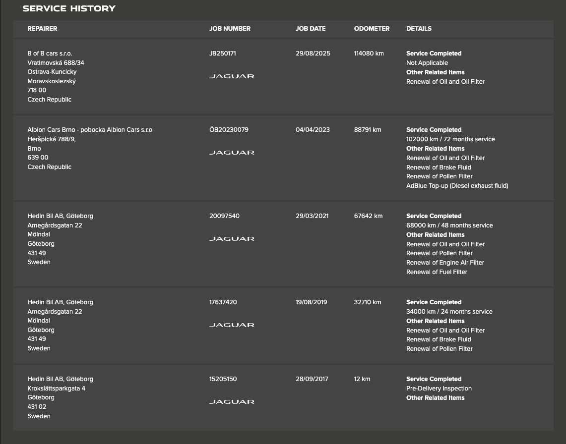 | Historie | Zobrazit historii vozu |