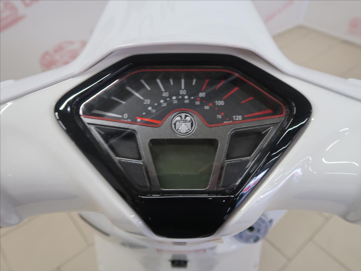 VYUŽIJTE NAŠE VÝHODNÉ FINANCOVÁNÍ. Keeway Sixties 125 Keeway představuje zcela nový Keeway Sixties 125, skútr s nádechem retro, který staví styl do popředí. Skútr je vhodný pro ŘP skupiny A1 a B. Kompaktní siluetu zdobí designové prvky, jako je decentní ozdoba na blatníku, detailní přední maska s integrovanými směrovými světly, prodloužená zadní karoserie a zadní stupačky, které se při nepoužívání schovávají do karoserie. Šikmý zadní nosič zavazadel se pomalu vysouvá, aby se z něj staly madla pro pasažéry – elegance a styl to je to co charakterizuje tento skútr. Zatímco vzhled připomíná 60tá léta minulého století, Keeway Sixties 125i se vyznačuje tím nejnovějším komfortem. Mezi řídítky je full-LED světlomet, zatímco LED brzdová a směrová světla plynule zapadají do karoserie skútru. Multifunkční klíčová mechanizmus zpřístupňuje elektronický startér, úložný prostor pod sedadlem a zámek řízení. Pod retro elegantní karoserií se skrývá jemné předení moderní pohonné jednotky v podobě čtyřdobého vzduchem chlazeného motoru o obsahu 125ccm. Neobvyklé pro kompaktní skútry jsou samostatné sedáky pro jezdce a spolujezdce, tedy žádný kompromis mezi stylem a pohodlím. Karoserie, kola, sedla, interiér můžete nalézt v dokonalých kombinacích podle své osobnosti: decentní matná černá, bílo-červená dvoubarevná nebo tříbarevná modrobílá s hnědými sedadly. Motor1válec, 4takt, 124,6 cm3, SOHC Vrtání x Zdvih52,4mm × 57,8mm Chlazenívzduchem Výkon7,2Kw při 8000ot/ min Max toč.moment9,6 Nm/ 6500 ot/ min kompresní poměr10,3:1 VstřikováníTCI PřevodovkaCVT automat Sekundární převodautomat spojkaautomat přední kolo120/70 -12 zadní kolo120/70 -12 pření pruženívidlice 50mm zadní pruženíjeden tlumič přední brzdakotouč 220 mm zadní brzdakotouč 215 mm suchá hmotnost127kg výška sedla780 mm kapacita palivové nádrže10L Baterie12/8Ah (YTX9-BS)