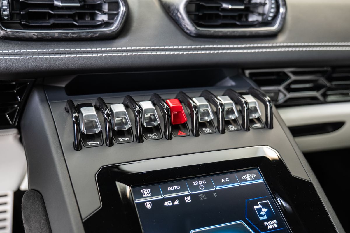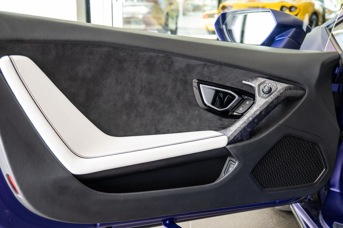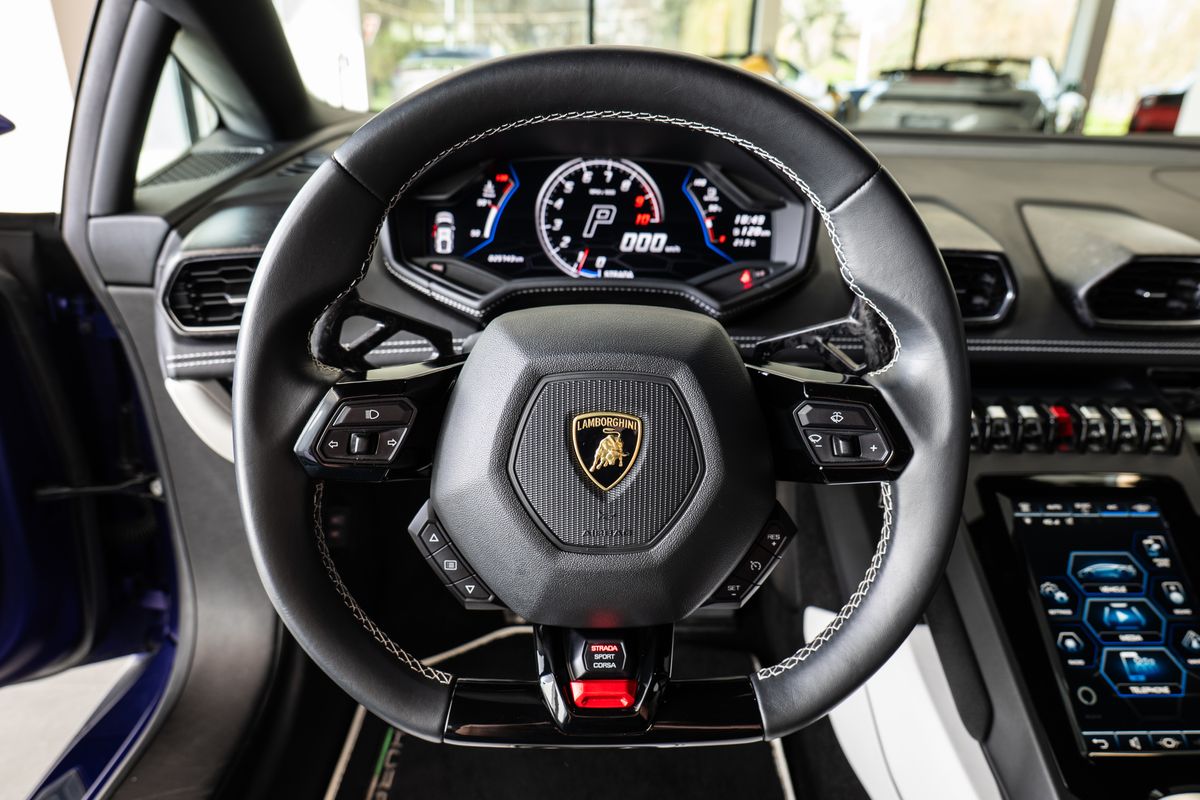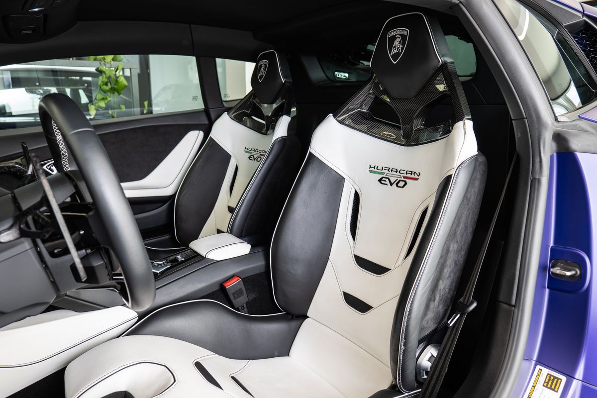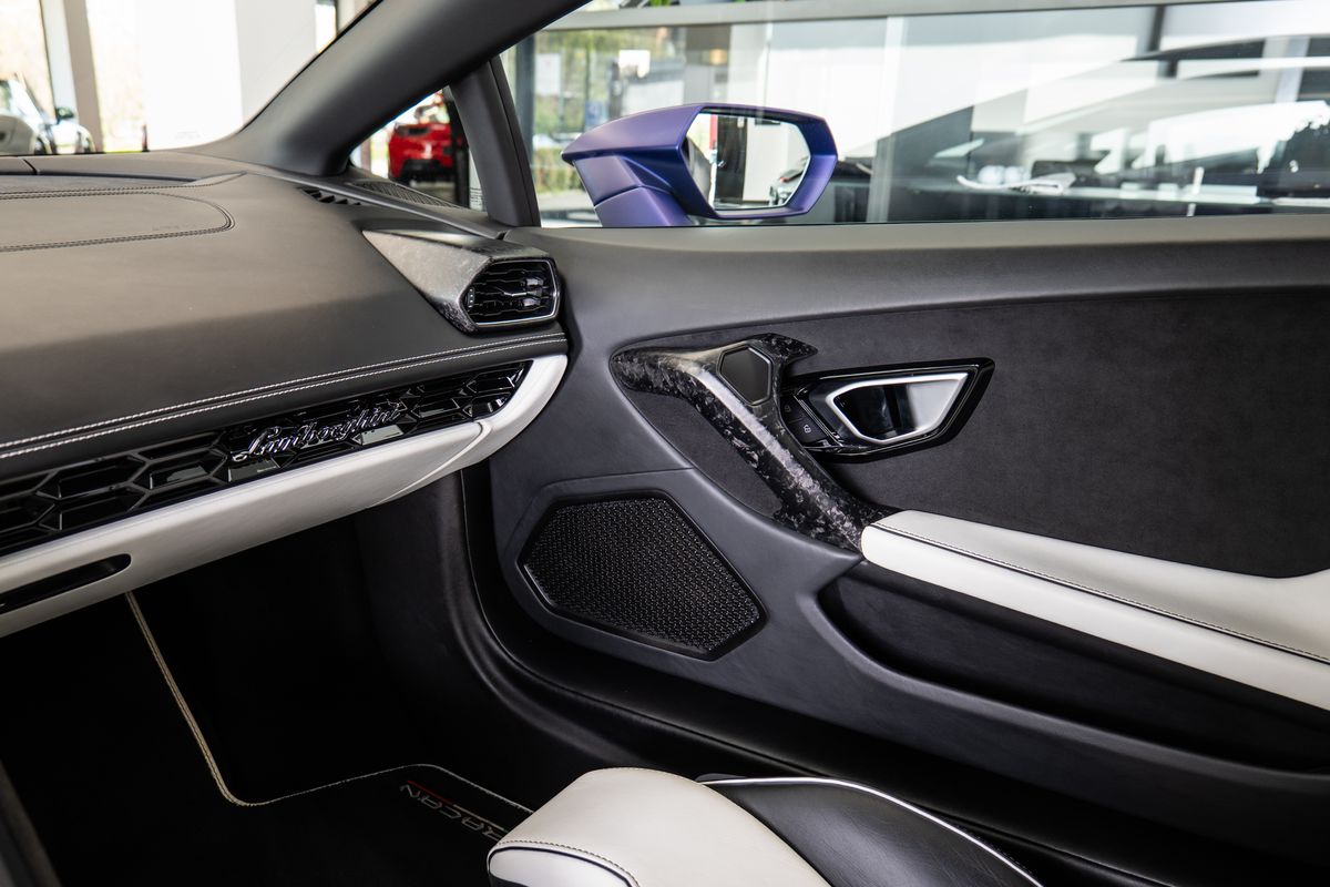 Prodloužená záruka - 09/2025 Prošívání volantu – Bianco Leda (bílá), Podlaha a koberečky s koženým lemováním a dvojitým prošíváním, Koberce a koberečky – dvoubarevné provedení, Základní barva: Nero Ade (černá), Kontrastní barva: Bianco Leda (bílá), Barevné provedení interiéru pro Unicolor EVO-TRIM, Kovaná 20 kola – lehká leskle černá, Ocelové brzdy s černými třmeny, Průhledný kryt motoru, Elektricky sklopná a zatmavená vnější zpětná zrcátka, Zadní nárazník leskle černý, zadní difuzor leskle černý, Výdechy motoru v barvě karoserie, Rozšířené obložení interiéru podle specifikací Ad Personam, Výšivka loga Lamborghini na hlavové opěrce, Standardní sportovní sedadla, Dveřní prahy z hliníku s logem Lamborghini, Výztuhy z uhlíkových vláken, Balíček elektrického řízení (EPS), Prémiový audiosystém Lamborghini Sensonum s 10 reproduktory, Navigační systém s evropskými mapami, Komunikační modul (SIM s přístupem k internetu), Pevný disk s pamětí 128 GB, Lamborghini Smartphone Interface (Apple CarPlay), Smartphone Interface a Connected Services, Systém proti krádeži