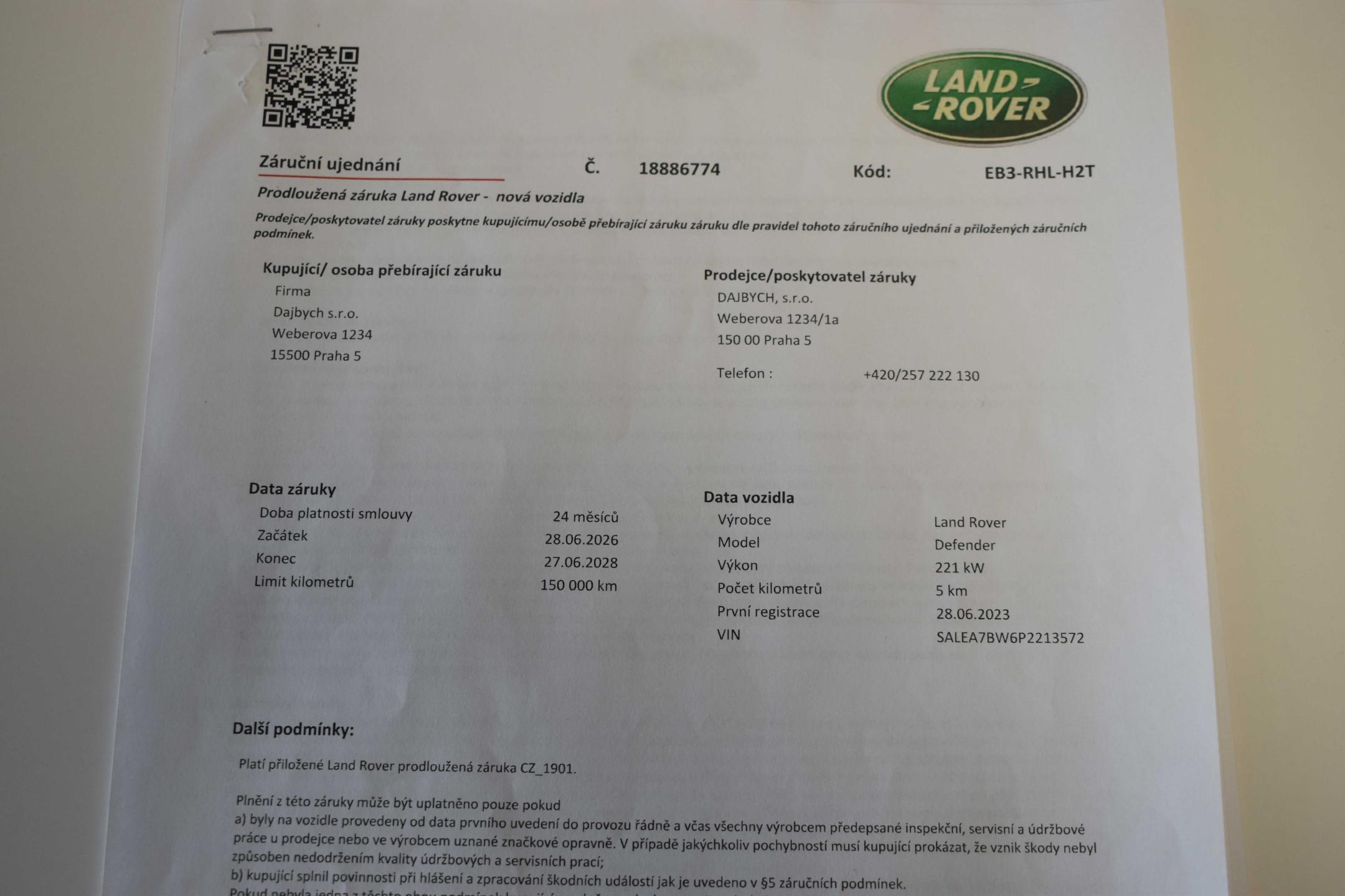 Vozidlo registrované jako nové v ČR, vůz v tovární záruce do 27.6 2028 nebo 150 000 km, s možností odpočtu DPH. Pravidelně servisováno v autorizovaném servise, poslední servisní interval proveden v únoru 2026. Historie vozidla prověřena společností CEBIA, na vyžádání lze zaslat Cebia report mailem. Z volitelné výbavy: Cold Climate pack, Driver Assist pack, Comfort and Convenience Pack, Advanced Off-Road Capability Pack, El. aktivní diferenciál, Světla LED MATRIX, Air suspension a další. Tato nabídka má pouze informativní charakter a neslouží jako podklad pro uzavření objednávky. STOP CARS s.r.o. si vyhrazuje právo uzavření všech smluvních vztahů písemně.