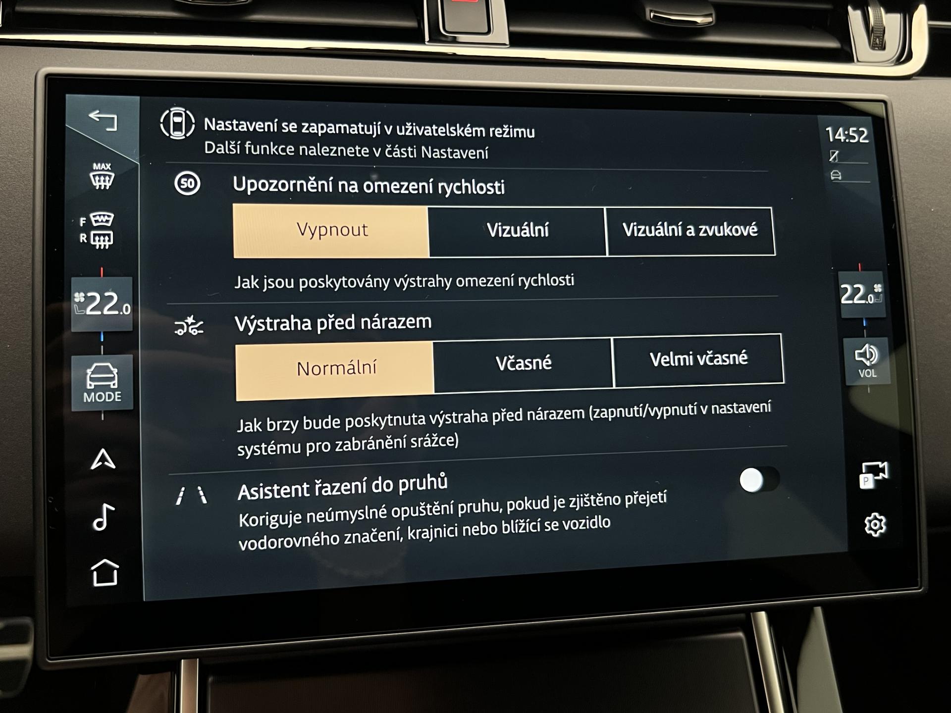 • asistent jízdy v jízdním pruhu