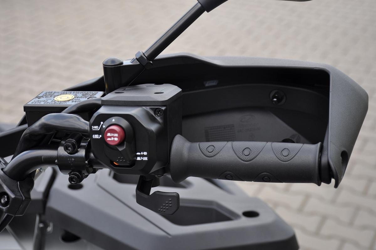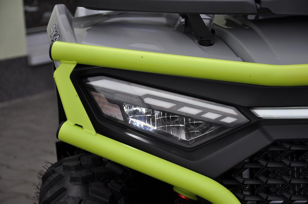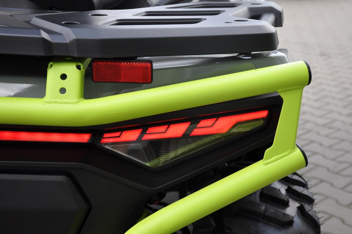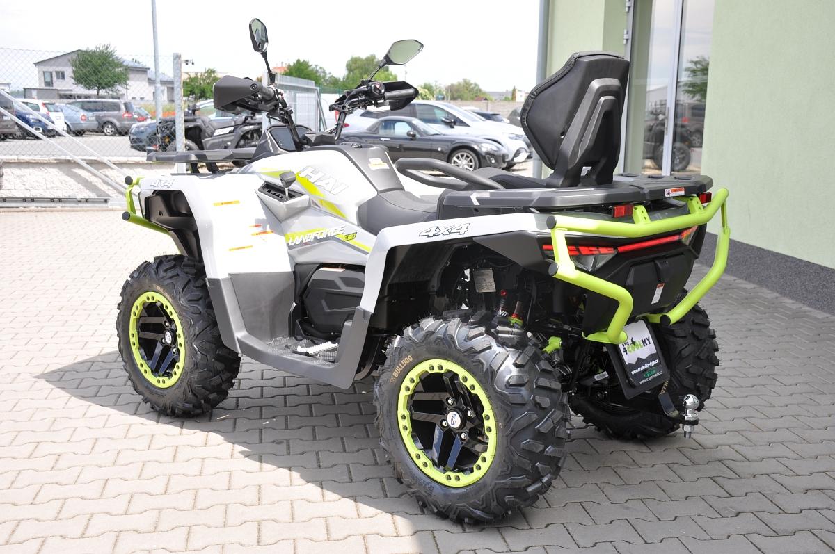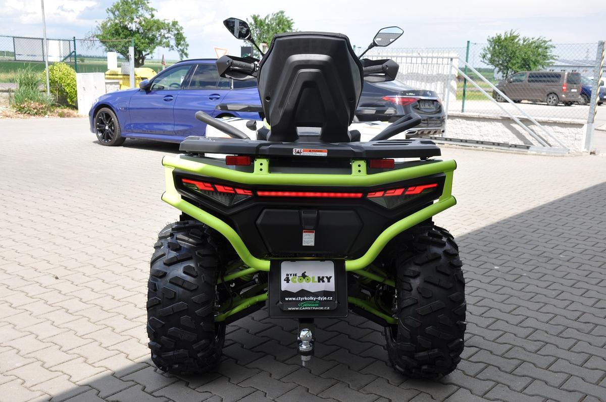 DOPRAVA PO ČR ZDARMA. ZÁRUKA 5 LET i pro podnikatele. Užitková / pracovně-rekreační čtyřkolka, T3b, dlouhý rozvor, vysokovýkonné Full-LED matrixové světlomety, LED světla pro denní svícení, přední dynamické LED blinkry, kapalinou chlazený jednoválec 580 cm3, posilovač řízení EPS, EFI, automatická převodovka CVTech, L/H/N/R/P, pohon 2x4 / 4x4 s uzávěrkou předního i zadního diferenciálu, plynokapalinové plně nastavitelné tlumiče s oddělenou nádobkou nezávislá dvojitá A-ramena, 4x kotoučová brzda, tažné zařízení, masivní přední a zadní ochranný rám, kompozitní nosiče vpředu a vzadu, El. naviják 3000lbs s nylonovým lanem a dálkovým ovládáním, 14\\\" ALU kola se systémem Beadlock, 26\\\" pneumatiky Bulldog, hliníkové protiskluzové stupačky řidiče a spolujezdce, dvoubarevně prošívaná sedačka spolujezdce a opěrka zad, barevně lakovaná A-ramena a pružiny.