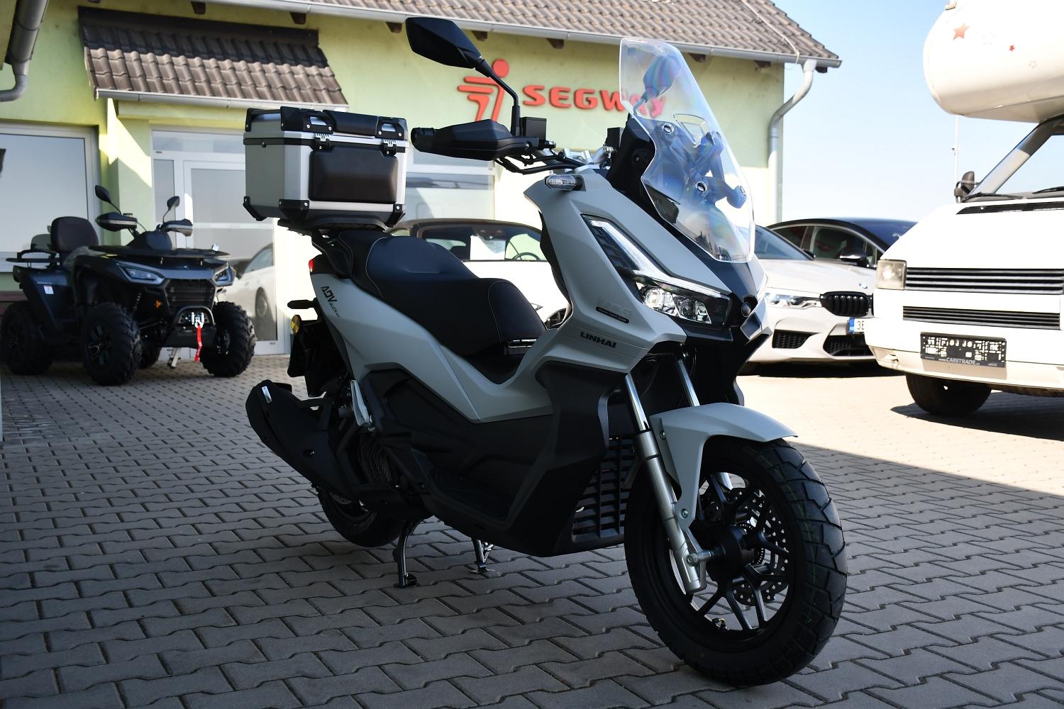 5LET ZÁRUKA. Skladem ihned k odběru. Linhai ADV Buck 125 je moderní kompaktní skútr s vizáží a vlastnostmi Adventure motocyklu. Díky vyšším zdvihům pérování se stane ideálním pro jízdu ve městě, při každodenním dojíždění do práce, anebo i pro výlety do lehčího terénu. Kromě výborných jízdních vlastností vás nadchne i jeho bohatá výbava, která je naprosto výjimečná na poměry v této třídě i této cenové kategorii - elektronická kontrola trakce, systém ABS, bezklíčové Keyless startování, full-LED osvětlení, podsvícené přepínače na řídítkách nebo prostorný polstrovaný plastový kufr. To vše dělá z Linhaie ADV Buck 125 mimořádně praktický, funkční, zábavný a snadno ovladatelný skútr, navíc za velice příznivou cenu.