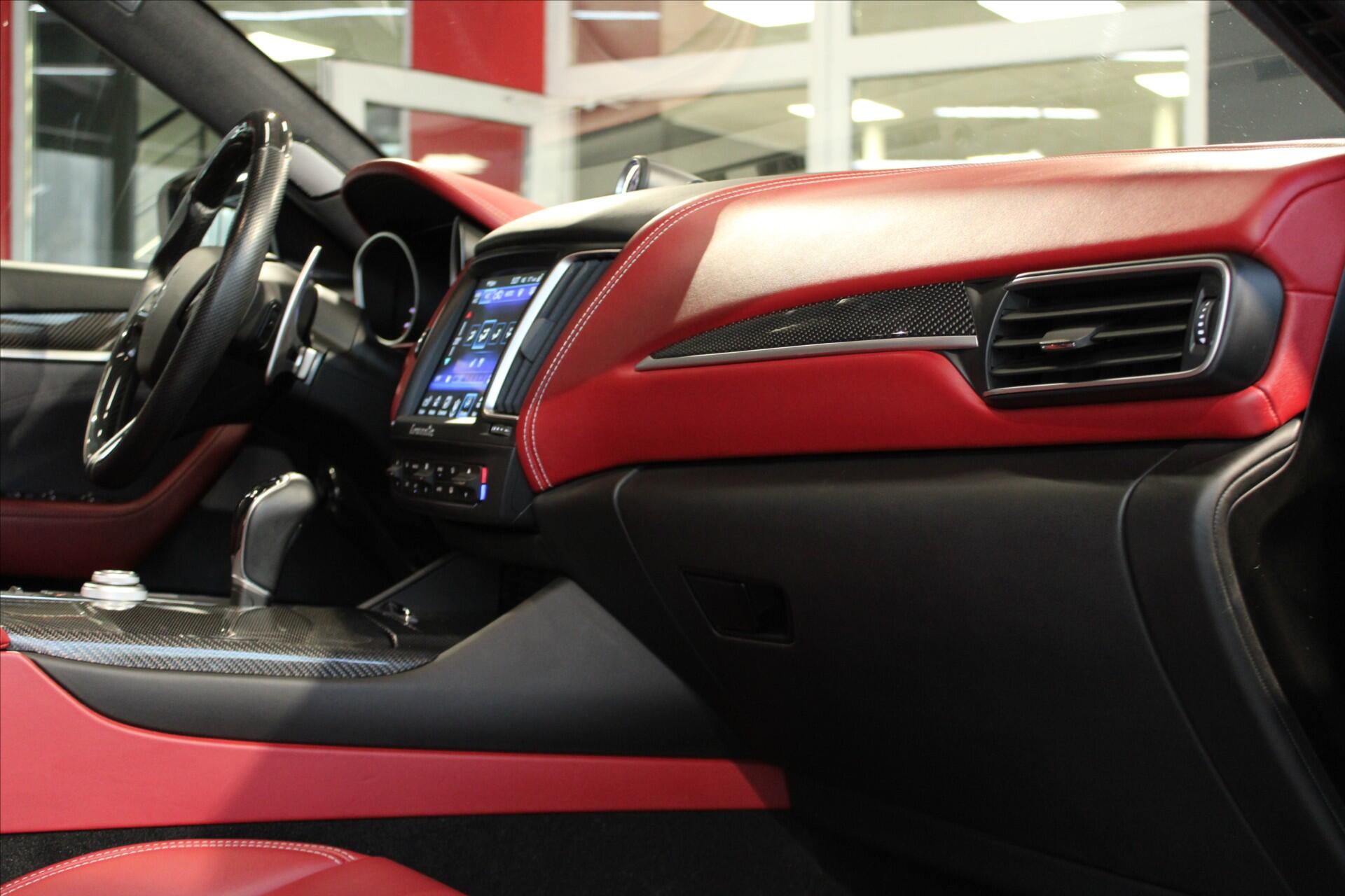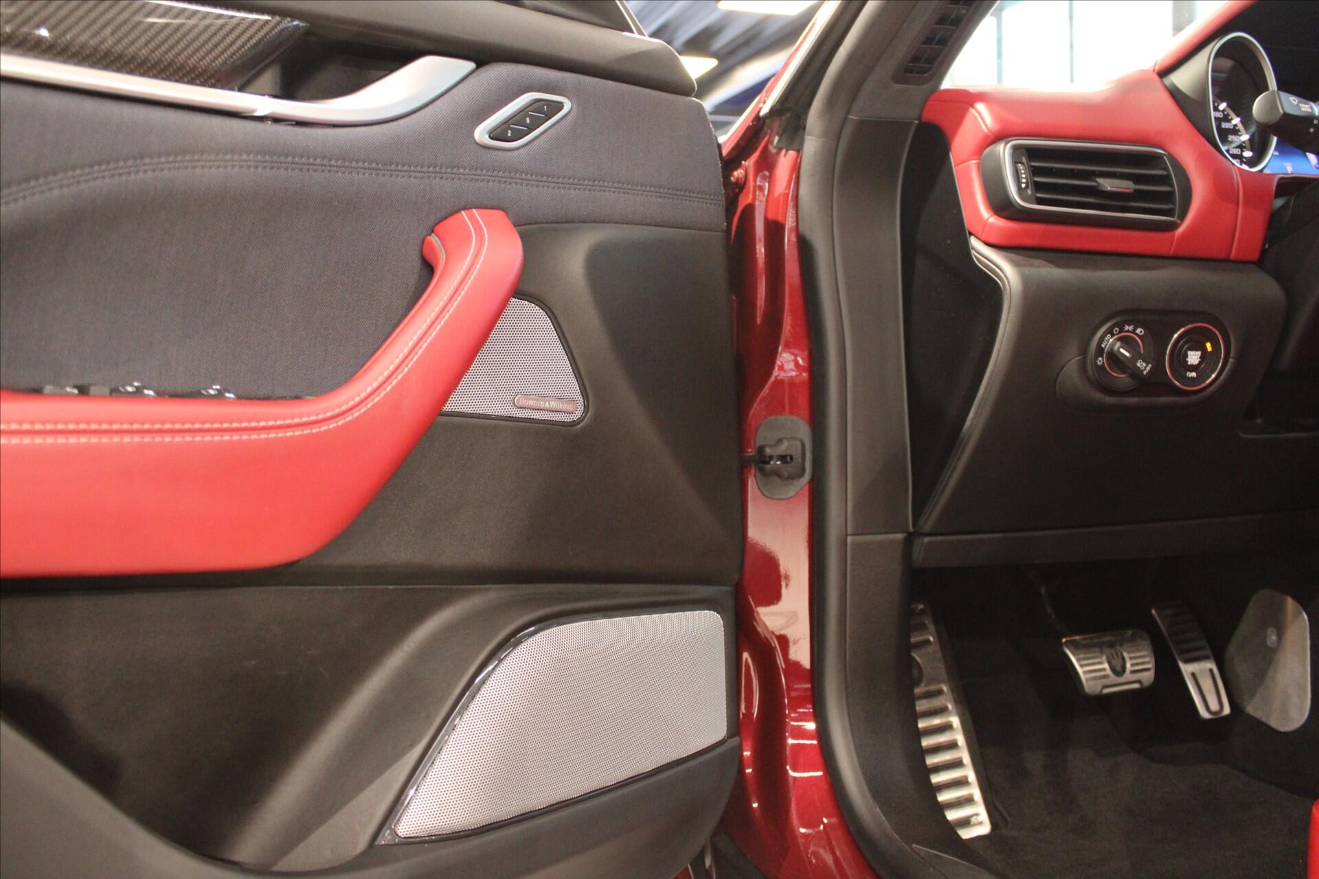 Levante S Granlusso! Nádherné SUV s motorem V6 430k. Možný odpočet DPH a český původ. Kompletní servisní historie. Poslední pravidelný servis ve 116942 km. Prémiový kožený interiér Zegna Rosso/Grigio s karbonovým obložením a elegantní červený metalický lak Rosso Rubino v kombinaci s 20 disky M161 Nereo a žlutými brzdovými třmeny. Adaptivní vzduchový podvozek Skyhook. Driver Assistance Plus (Adaptivní tempomat, Hlídání jízdního pruhu a Mrtvého úhlu). Matrix LED světlomety s asistentem dálkových světel. 360° kamerový systém. Keyless-Go. Vyhřívaná a ventilovaná sedadla s pamětí vpředu, vzadu vyhřívaná. Soundsystem Bowers & Wilkins Premium. Čtyřzónová klimatizace. Multimediální systém Maserati Touch Control. Zadní sluneční roletky. Průvlak mezi zadními sedadly. Kompletní specifikaci výbavy, veškeré informace o historii vozu a detailní fotografie Vám rádi zašleme na vyžádání.
