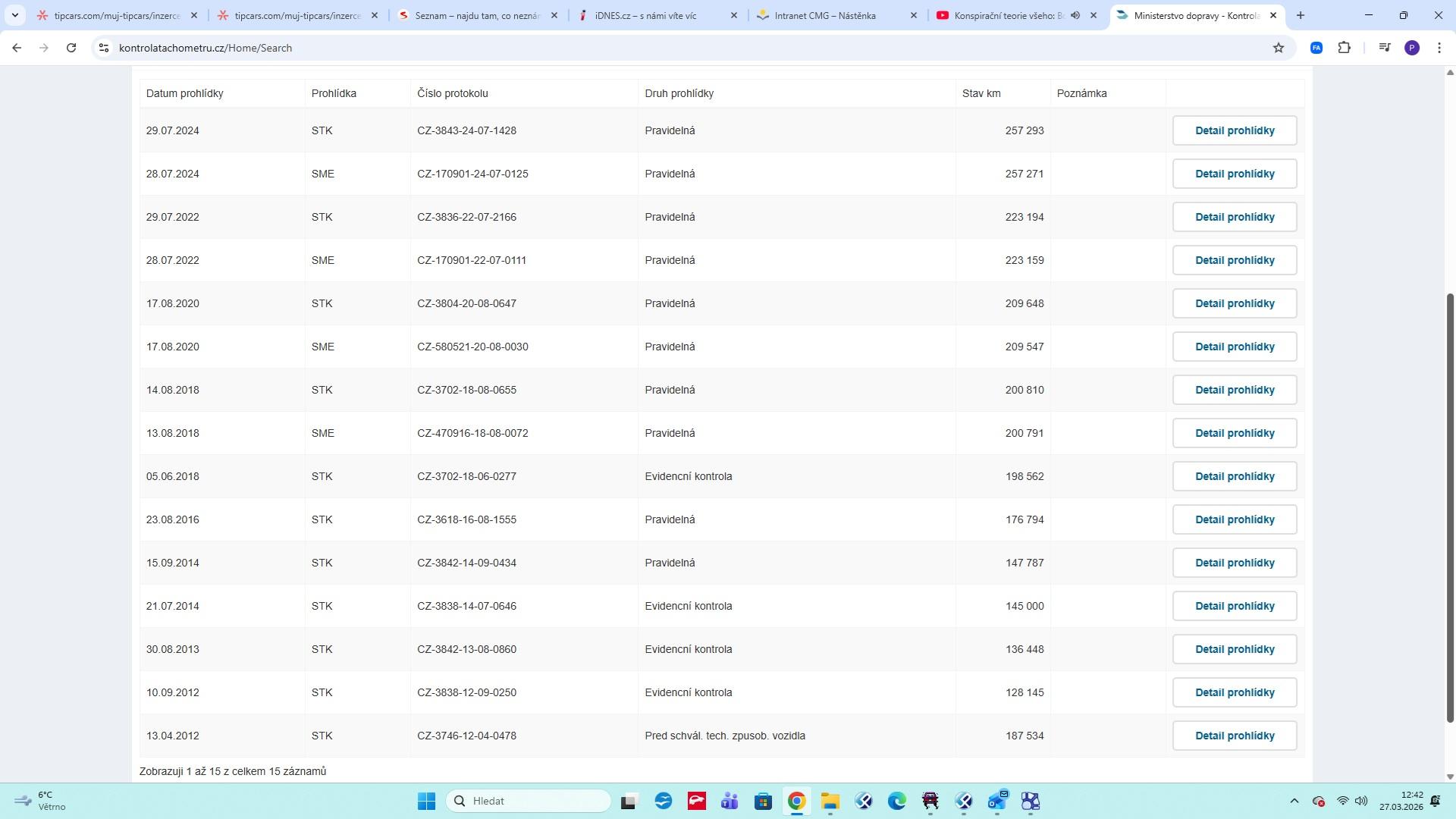 | Historie | Zobrazit historii vozu |