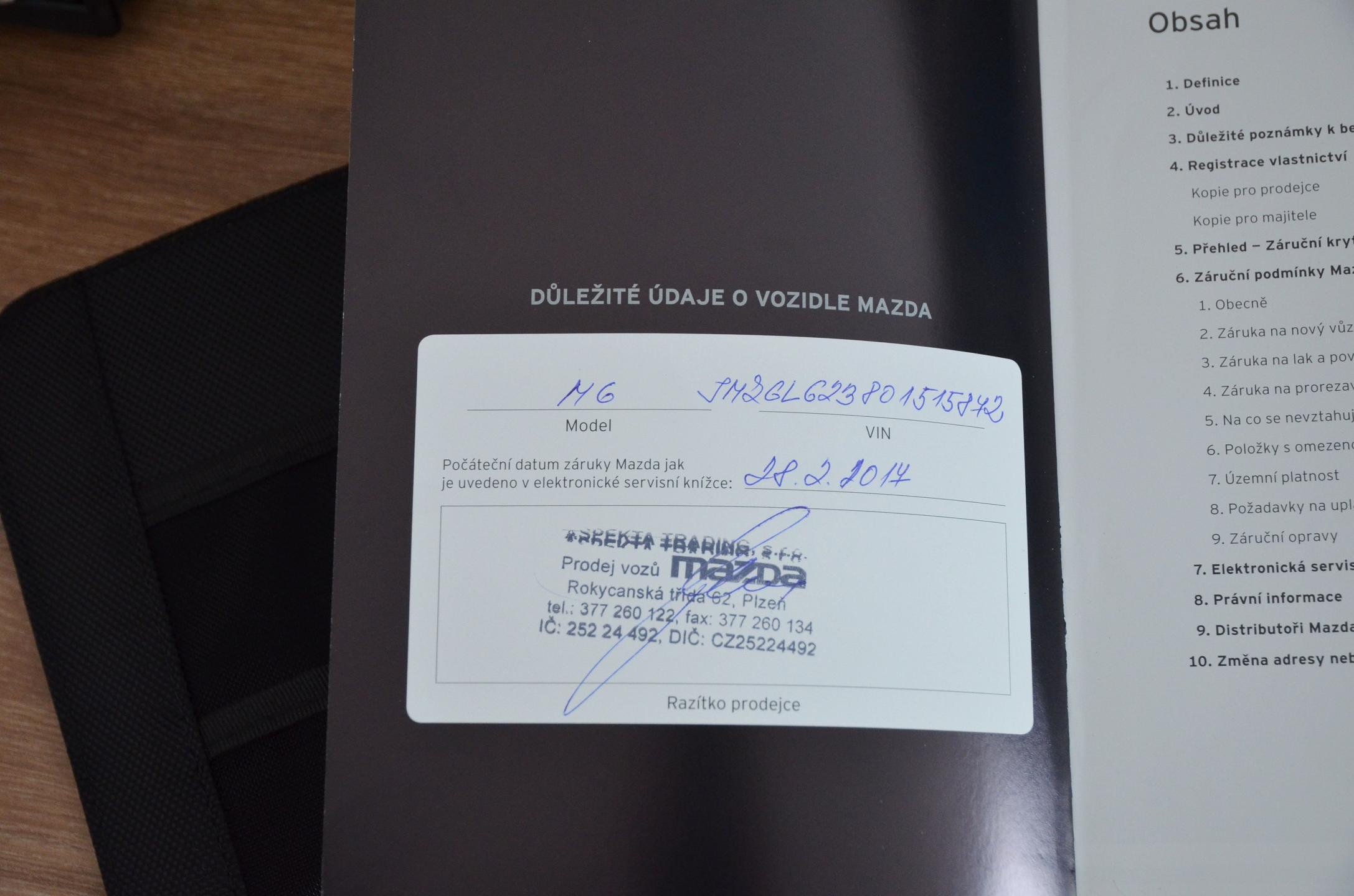 VOZIDLO SKLADEM - IHNED k dispozici // Možnost odpočtu DPH. 1. MAJITEL, zakoupeno nové v ČR (Aspekta Plzeň), registrace 09/2017. 2x orig. klíč, elektronická servisní kniha. K dispozici letní sada (orig. disky Mazda) - dohoda. Poslední výměna oleje a filtrů při 132.200km. Červená metalíza SOUL RED. Motor 2.5 SKYACTIV, 6st. AUTOMATICKÁ PŘEVODOVKA s řazením pádly pod volantem, alu disky orig. MAZDA 17". BEZKLÍČOVÉ ODEMYKÁNÍ + START tlačítkem, DVOUZÓNOVÁ AUT. KLIMATIZACE, 4x VYHŘÍVANÁ SEDADLA, multifunkční VYHŘÍVANÝ VOLANT, přední sedadla EL. NASTAVITELNÁ (u řidiče PAMĚTI), LED SVĚTLOMETY, ADAPTIVNÍ TEMPOMAT, asistent MRTVÉHO ÚHLU / JÍZDY V PRUHU, NOUZOVÉ BRZDĚNÍ, čtení dopr. značení, HEAD-UP DISPLAY, parkovací KAMERA, P+Z PARK. SENZORY, NAVIGACE, čalounění KŮŽE, režim SPORT, audiosystém BOSE, EL. SKLOPNÁ ZRCÁTKA atd.