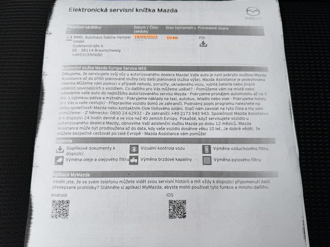Model SELECTION - 121 KW - 165 PS - do provozu 24.5.2022 - 57 527 km - full LED světlomety - automatická klimatizace - hlídání jízdních pruhů + mrtvého úhlu - tempomat - bluetooth - orig. odnímatelné tažné zařízení - parkovací kamera 360°- keyless-go - orig. AL. kola 19, letní pneu, možnost dokoupení kompletní sady orig. AL. zimních kol, elektronická servisní knížka, pravidelný servis pouze MAZDA, poslední záznam 5/2025 při 46 169 km. PERFEKTNÍ STAV !!! V případě zájmu naleznete kompletní informace včetně fotodokumentace přímo na našich stránkách AUTO-RE