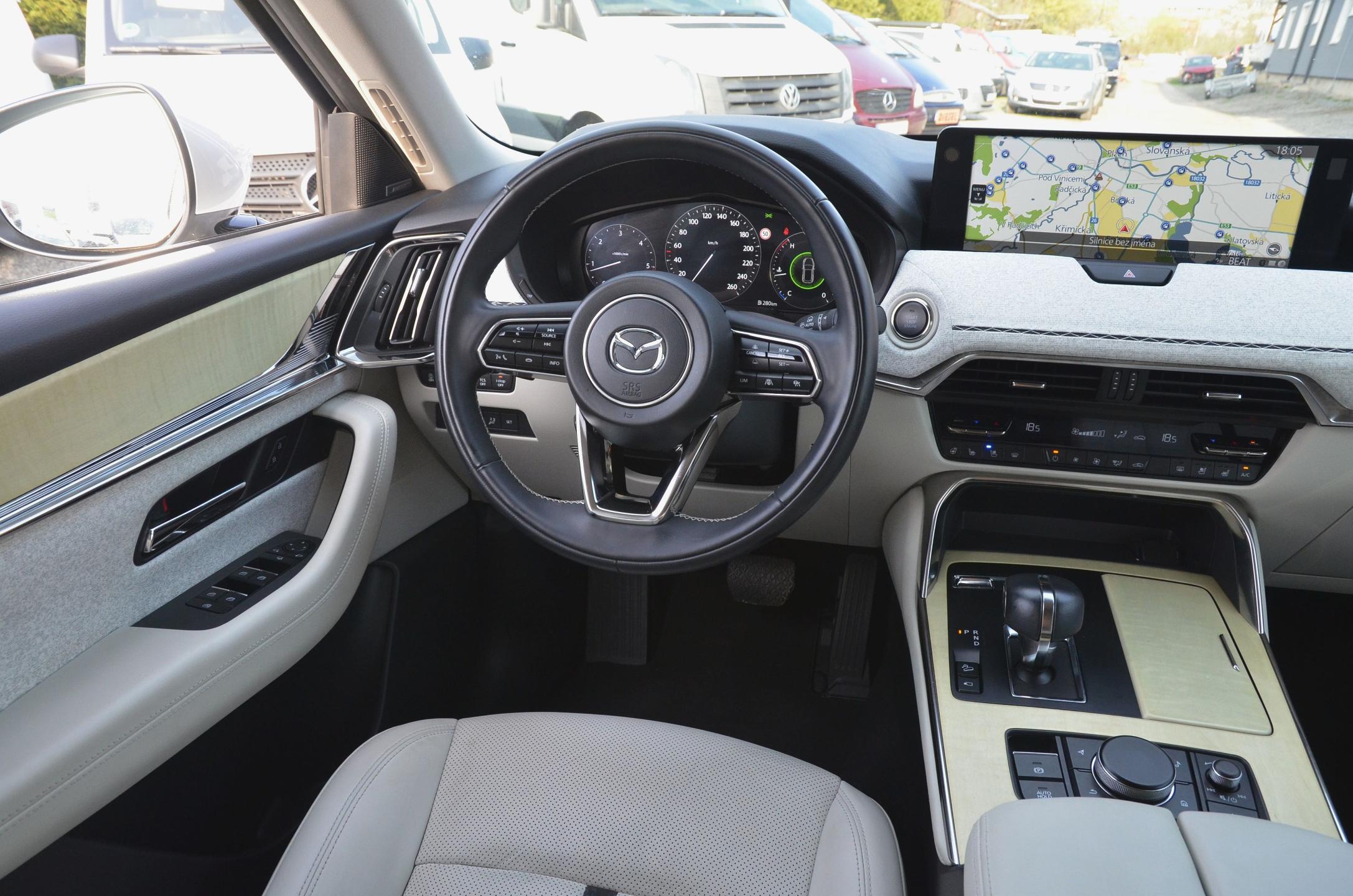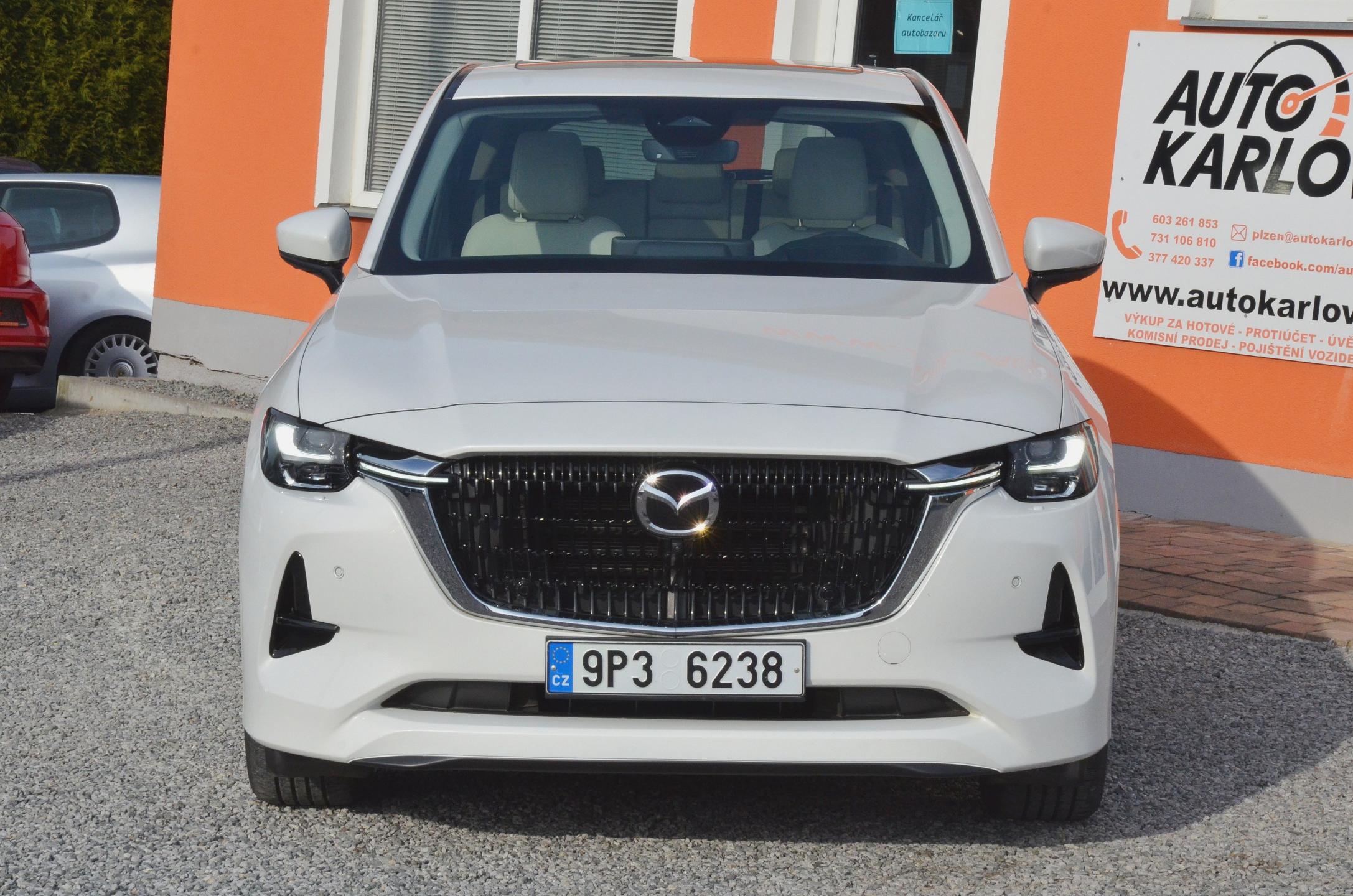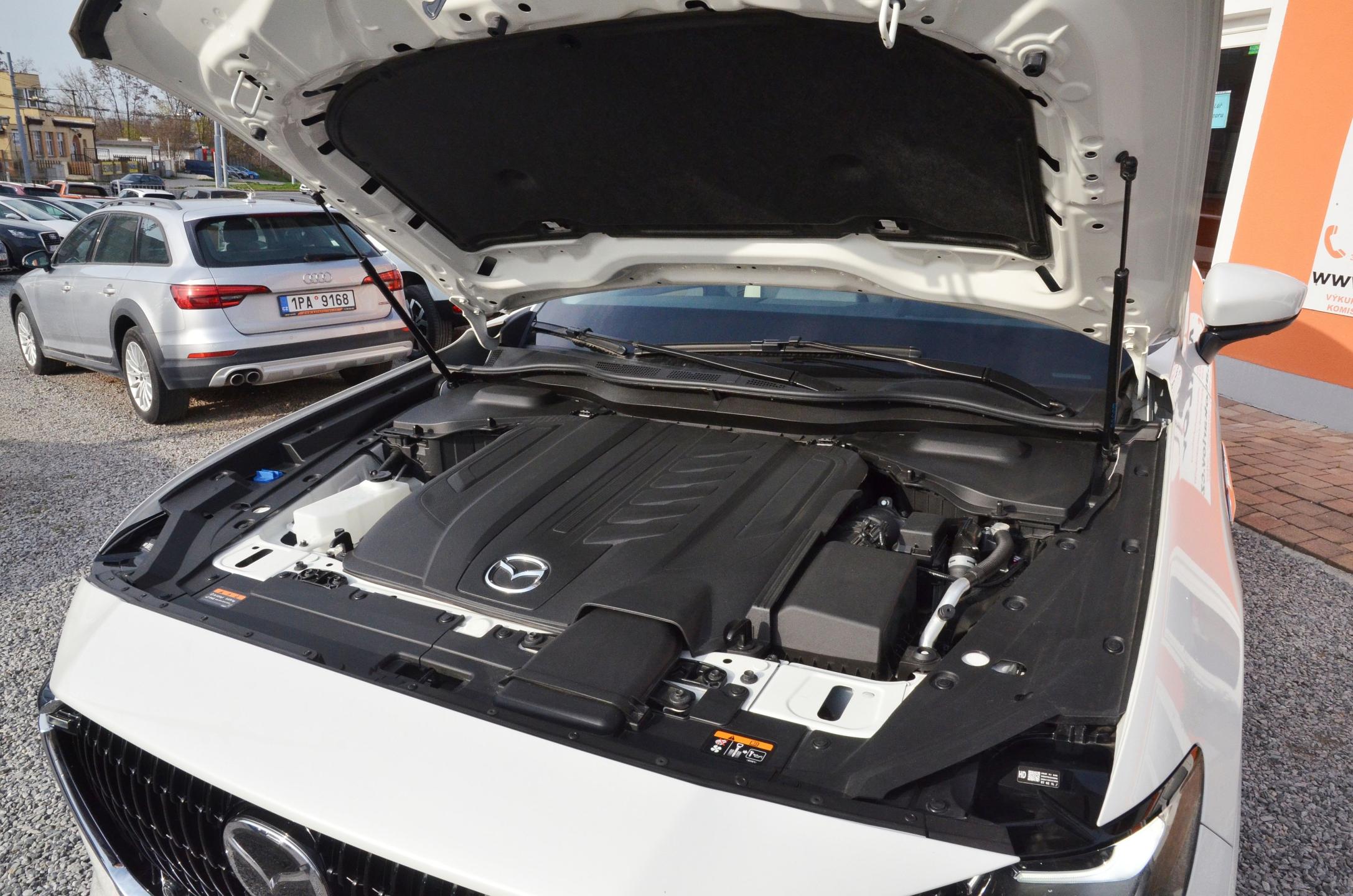 Možnost odpočtu DPH. 1. registrace 02/2023 (Mazda Německo), KRÁSNÝ STAV ! TOVÁRNÍ ZÁRUKA 6 let (do 02/2029 nebo 150.000km). Zakoupeno v Německu při 8.000km v Autohaus Hellwig. NOVĚ po servisní prohlídce v Mazda Aspekta Plzeň při 20.587km včetně výměny oleje a filtrů. 2x orig. klíč. Výbava TAKUMI PLUS + pakety KOMFORT / SAFETY / POHODLÍ A SOUND - maximální specifikace. Navíc TAŽNÉ ZAŘÍZENÍ vč. 3. RZ na nosič kol, originální kryt zavazadlového prostoru. Alu disky orig. MAZDA 20", lakování RHODIUM WHITE METALLIC (bílá perleťová metalíza). POHON 4x4 AWD, motor 3.3 D 187kW (254k), AUTOMATICKÁ PŘEVODOVKA (8 st.), ADAPTIVNÍ LED SVĚTLOMETY vč. asistenta dálk. světel, BEZKLÍČOVÝ PŘÍSTUP / START, PANORAMATICKÁ STŘECHA, 360° KAMERY, audio BOSE, ADAPTIVNÍ TEMPOMAT, HEAD DISPLAY, jízdní ASISTENTI (mrtvé úhly, jízda v pruhu, čtení dopr. značení atd.), NAVIGACE, volba jízdního režimu Mi-DRIVE, světlá kůže NAPPA + obložení světlé dřevo, EL. NASTAVITELNÁ přední sedadla (paměti u řidiče) + VENTILOVANÁ, VYHŘÍVANÁ přední i zadní sedadla, VYHŘÍVANÝ VOLANT (el. nastavitelný), HEAD-UP DISPLAY, el. víko kufru vč. hands-free ovládání atd. Vozidlo SKLADEM - IHNED k dispozici.