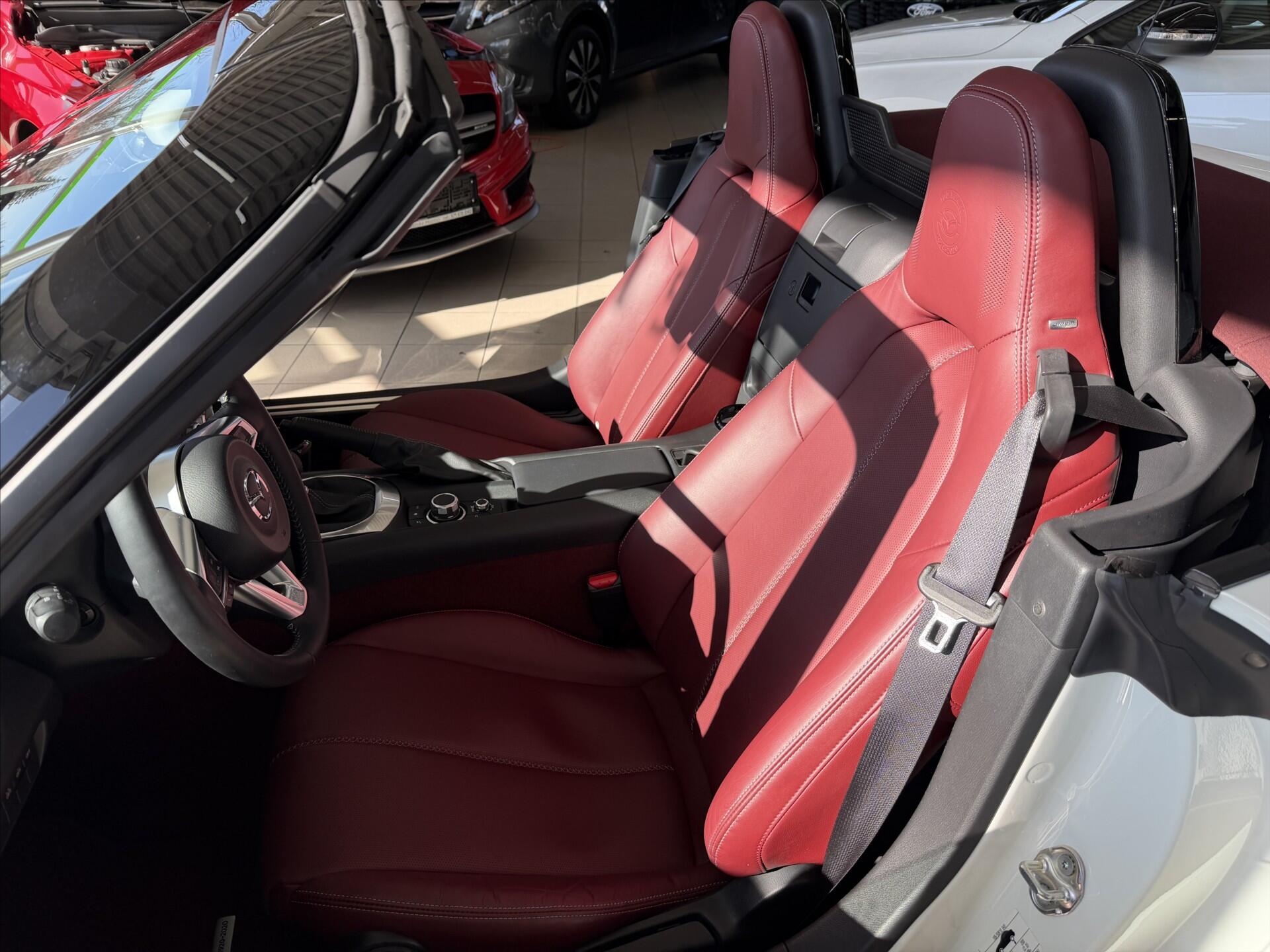Nádherná Mazda MX-5 v edici 100 YEARS 1920-2020 v nádherné barevné kombinaci bílé perleti s červenou střechou a červeným koženým interiérem. Pravidelný servis pouze v autorizovaném servise Mazda, v zimě nejeté. Top stav nového vozu. hudba BOSE s repro v hlavových opěrkách. Na autě nenajdete známku opotřebení. Další z našich krásných kusů, který Vám udělá radost. Jste u nás vítáni.