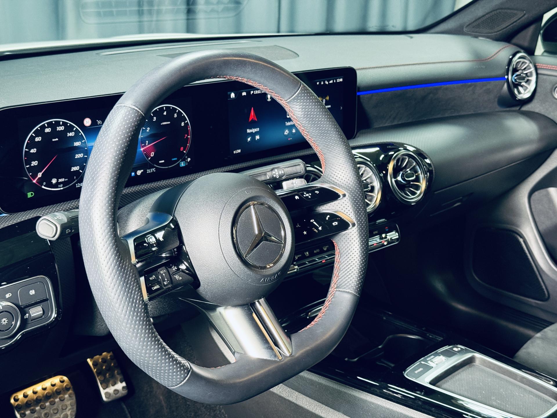 AMG styling - Přední spoiler, boční prahy, Bezklíčový přístup, Posilovač řízení v závislosti na rychlosti / Vario řízení ,Zadní kamera, Mercedes-Benz Connect MBUX Entertainment, Sledování mrtvého úhlu ,Aktivní parkovací asistent, Pravé elektricky nastavitelné sedadlo řidiče s pamětí, Aktivní asistent pro udržování v jízdním pruhu (kamera), Stmívající se vnitřní zpětné zrcátko, Varování před kolizí s aktivním brzděním FCW-Stop, GPS anténa, Asistent varování při vystupování, Paket paměti (sedadlo řidiče, sloupek řízení a zrcátka), Sítě na zavazadla v levém a pravém opěradle sedadla řidiče, Dvojitý držák na nápoje, Dešťový senzor, Příprava pro dodatečnou montáž navigačního systému, Navigace s pevným diskem, Zadní loketní opěrka, 7stupňová automatická převodovka dvouspojková převodovka, Řadicí tlačítka na volantu/řadicí páčky na volantu - galvanicky pokovené, Displej přístrojového panelu S, Systém kontroly tlaku v pneumatikách (TPM), Elektricky sklopná vnější zrcátka, Několikaleté bezplatné aktualizace map, Rozpoznávání dopravních značek, Čalounění stropu, černá látka, Digitální rádio standardu DAB (Digi. Audio Broadc.), Sluneční clona s přídavnou funkcí, Automatická klimatizace, Automatické ovládání dálkových světel plus (IHC+), Dynamické LED světlomety, pravostranný provoz, AMG styling - Přední spoiler, boční prahy, Vyhřívání sedadel řidiče a spolujezdce , Ambientní osvětlení, KEYLESS-GO, Pasivní rozpoznávání dětí v uzamčeném vozidle, Bezdrátové nabíjení telefonu vpředu, Přepínání ovládání asistenčních systémů na volantu, Řada AMG, Sada nářadí pro výměnu pneumatik, TIREFIT, Supersportovní volant - kůže s hlubokou ražbou, Balíček KEYLESS-GO, Paket parkování, Balíček zrcátek, Balíček nočního ovládání, MBUX, Navigation Premium, Balíček výbavy – High, Paprsková kola AMG 18" "na všech kolech", Indikátor stavu zadních bezpečnostních pásů, Sedadlo spolujezdce se snímačem hmotnosti, Koberečky – AMG, Brzdový systém s vyšším výkonem, Osvětlený práh dveří s vyměnitelným krytem, Balíček komfortního sezení, Ochrana chodců - Aktivní kapota, Balíček vnějšího osvětlení a výhleduV případě zájmu o prohlídku tohoto vozu a kompletní info nás prosím kontaktujte předem na jednom z naších telefonních čísel: 724262543, 774000299, 720485950. Vůz vám v případě koupi velmi rádi přihlásíme na Vás, přivezeme až domů, zajistíme nejvýhodnější financování s VIP sazbami RPSN či pojistku a pokud byste nám chtěli nabídnout Váš starý vůz protiúčtem, rádi jej od vás vykoupíme.Neváhejte nás kontaktovat pro více informací.