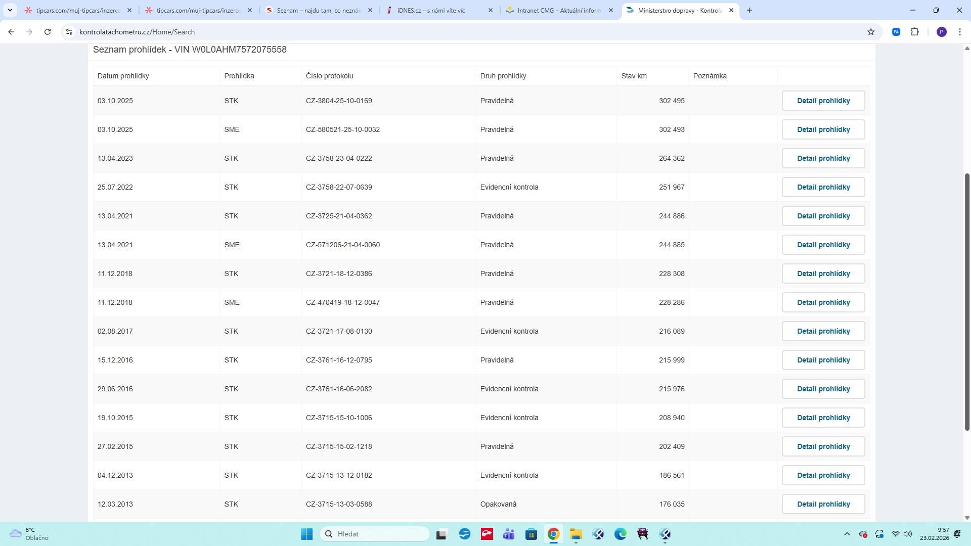| Historie | Zobrazit historii vozu |