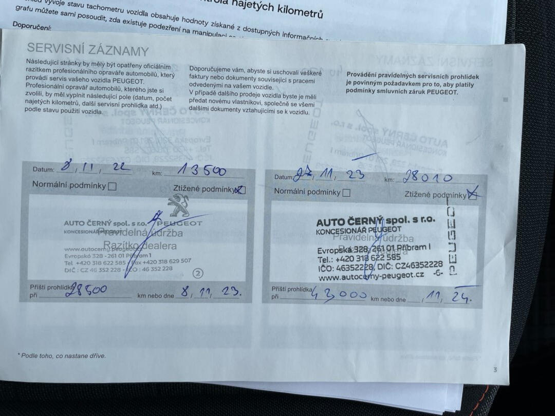 Nehavarovaný vůz po prvním majiteli. Koupený jako nový v České republice. Doložený pravidelný servis Peugeot. Poslední servis proveden 27.11.2025 při 43.707km!! Pěkné zimní obutí. Nyní vůz bez nutných investic! LED denní světlomety, automatická klimatizace, Apple Car Play a Android Auto, parkovací senzory, rozpoznávání dopravních značek, tempomat, senzor stěračů a světel...Možnost odpočtu DPH.