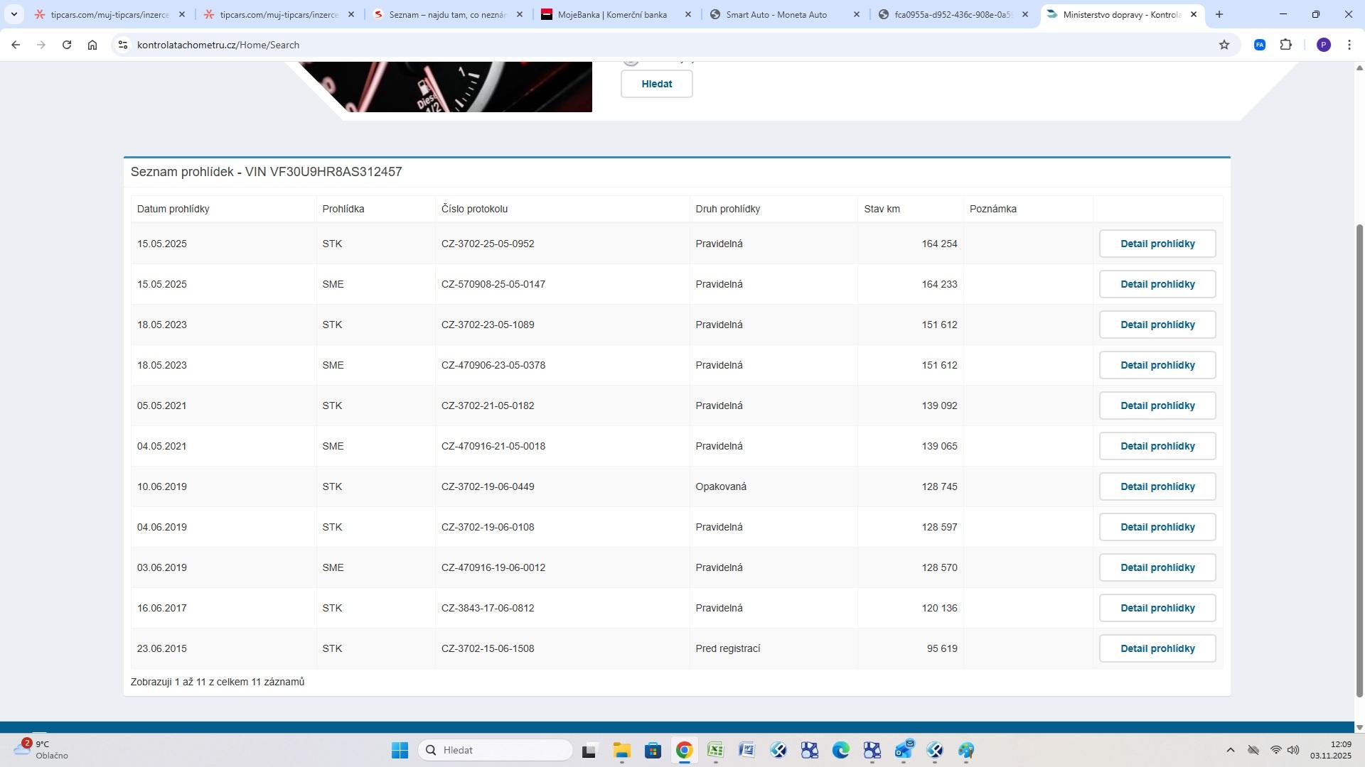 | Historie | Zobrazit historii vozu |