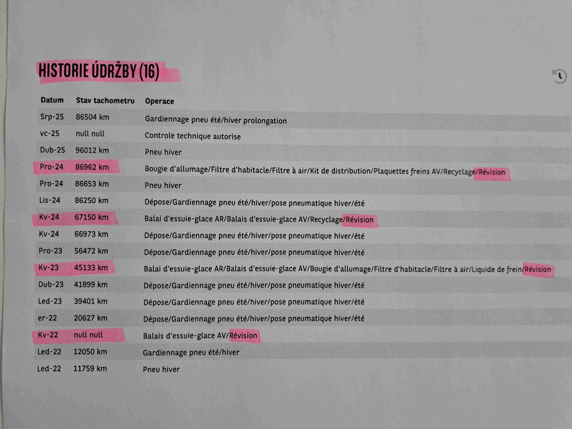 | Historie | Zobrazit historii vozu |