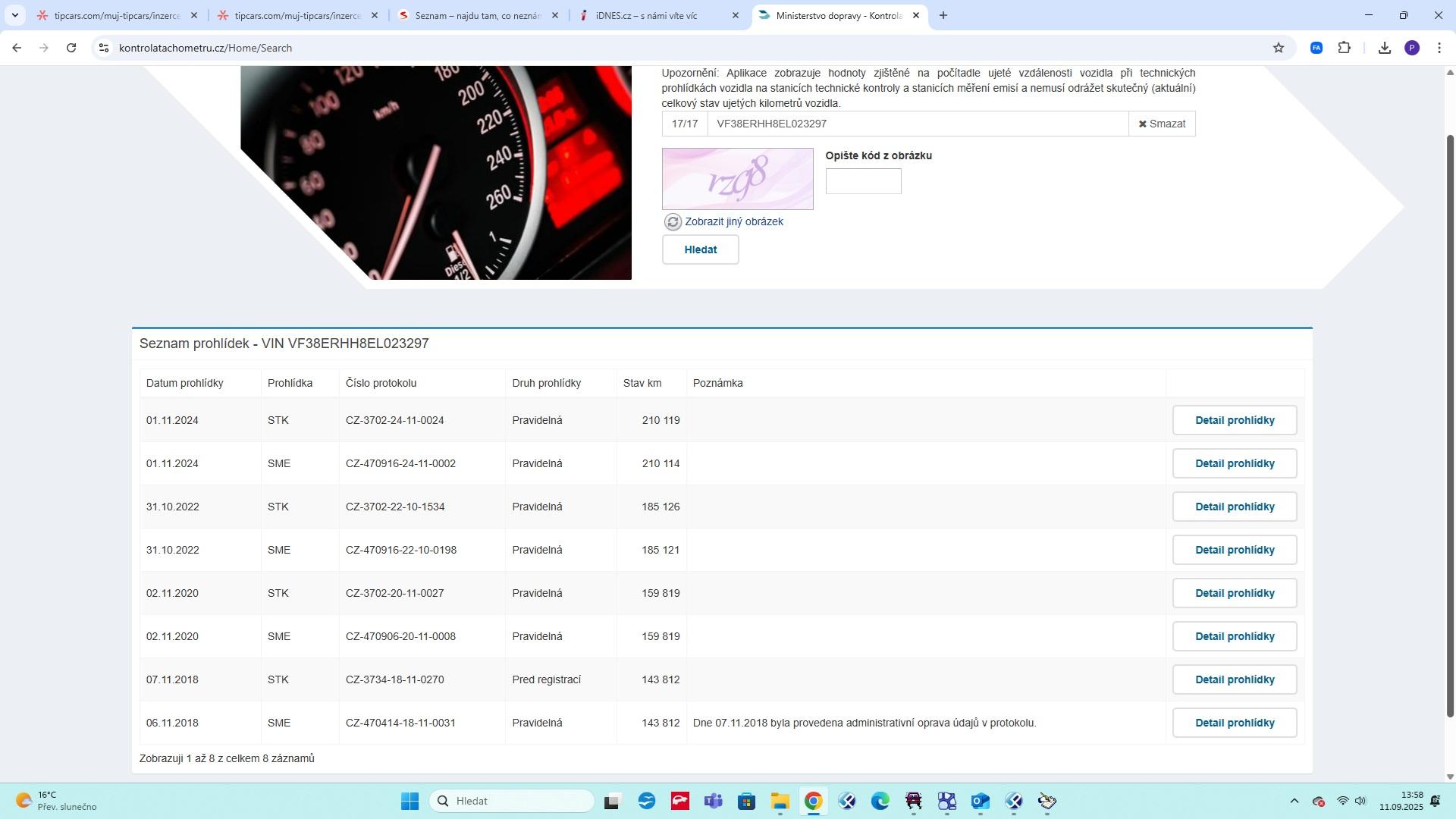 | Historie | Zobrazit historii vozu |