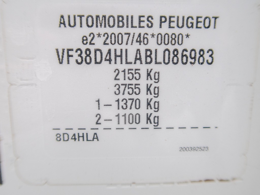| VIN | VF38D4HLABL086983 |