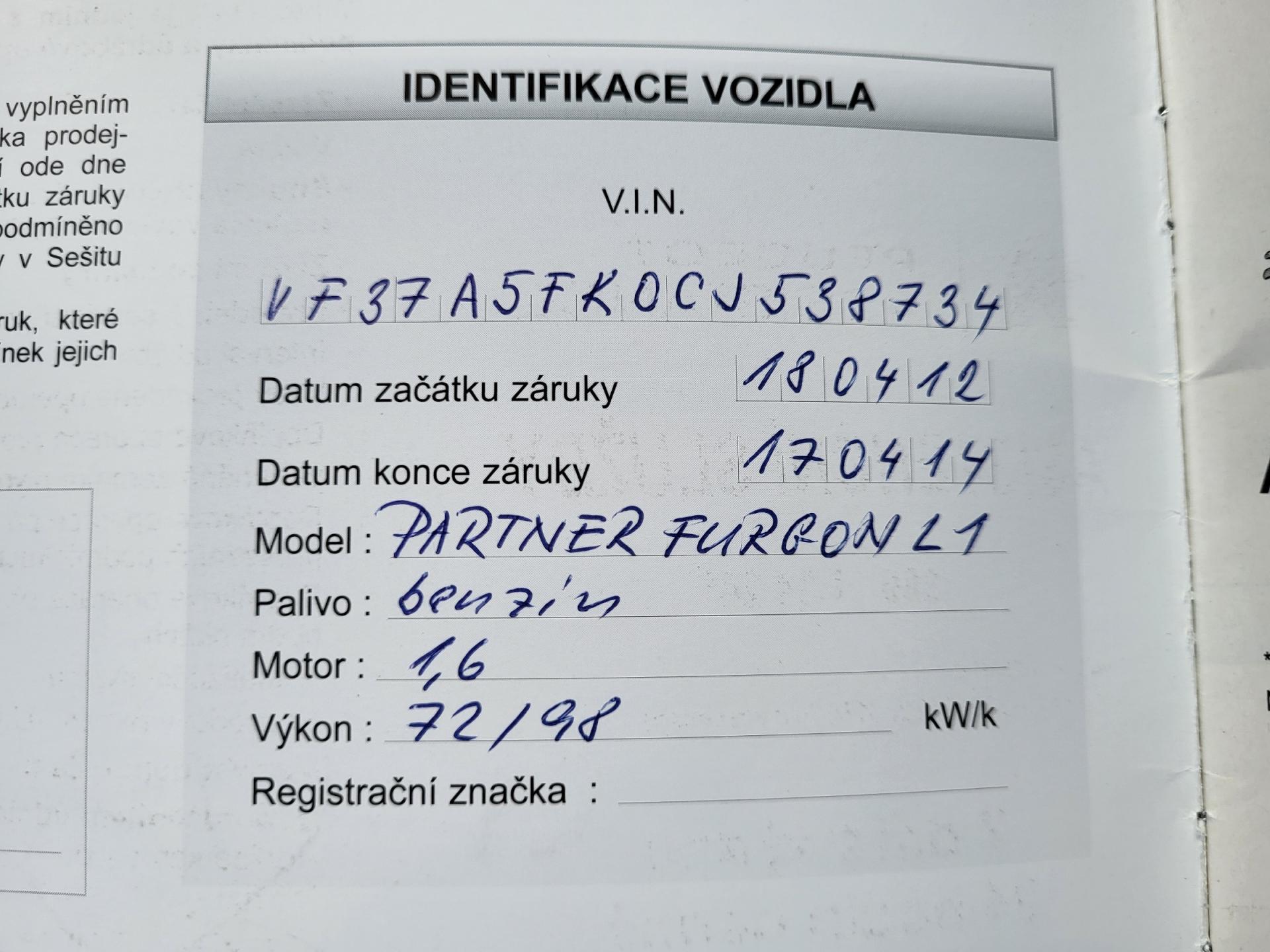 Peugeot Partner FG 1.6 BlueHDi 75k 3-místný L1