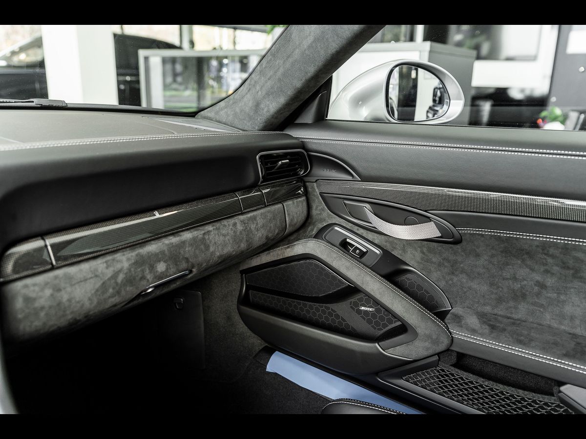 Kód inzerce: ZL.139.9124, Nový vůz. Nájezd 24km, 6bodové bezpečnostní pásy, vnější/vnitřní zpětná zrcátka s automatickým stmíváním a dešťovým senzorem, paket Clubsport, osvětlené vstupní lišty (karbon), hasicí přístroj, podlahové rohože, hlavní světlomety LED včetně Porsche Dynamic Light System (PDLS), paket světelného designu, palivová nádrž: 90 l, Zvedací systém přední nápravy, metalický lak GT-Silber, obložení Carbon, příjem digitálního rádia (DAB+), couvací kamera, sluneční clony Alcantara, audiosystém BOSE, Sport Chrono paket, víčko palivové nádrže s hliníkovým vzhledem