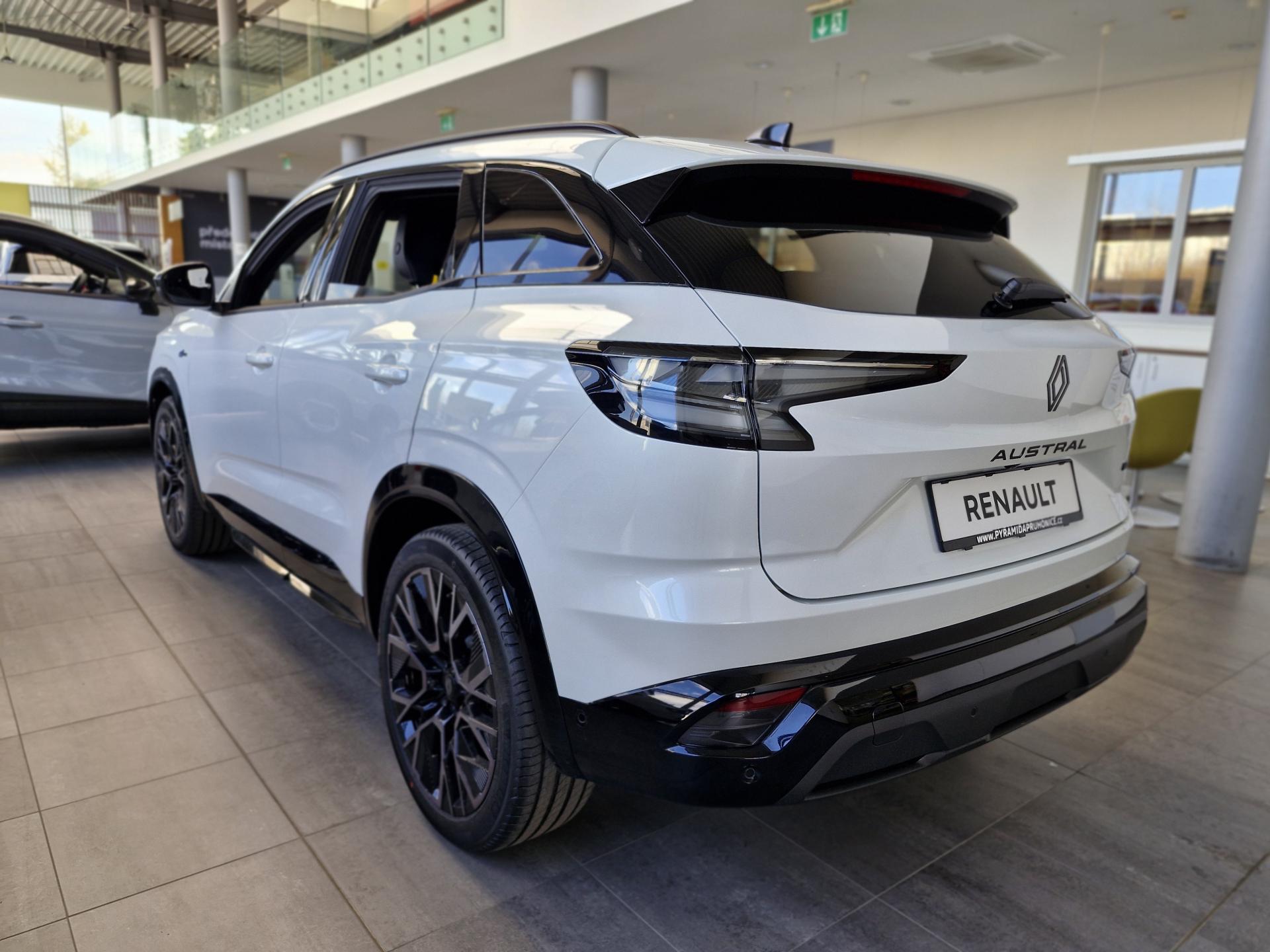 Renault Austral Esprit Alpine Full Hybrid 200. Úsporný a výkonný motor v kombinaci s moderními technologiemi a vysokým komfortem. Výbava zahrnuje: automatické přepínání dálkových světel, digitální zadní parkovací kameru s funkcí 360°, sledování mrtvého úhlu s aktivní korekcí jízdní dráhy, Rear Cross Traffic Alert s detekcí chodců a cyklistů, systém pro bezpečné opuštění vozidla, Multi-Sense pro nastavení jízdních režimů, vyhřívaný volant a čelní sklo, multimediální systém openR link 12" s navigací, službami Google, audio Arkamys (6 reproduktorů), indukční nabíječku smartphonu, bezrámečkové elektrochromatické vnitřní zpětné zrcátko, černé střešní lišty a 20" disky z lehkých slitin – design Altitude. Kontaktujte prodejce Petra Jelínková 606035107, petra.jelinkova@pyramidapruhonice.cz