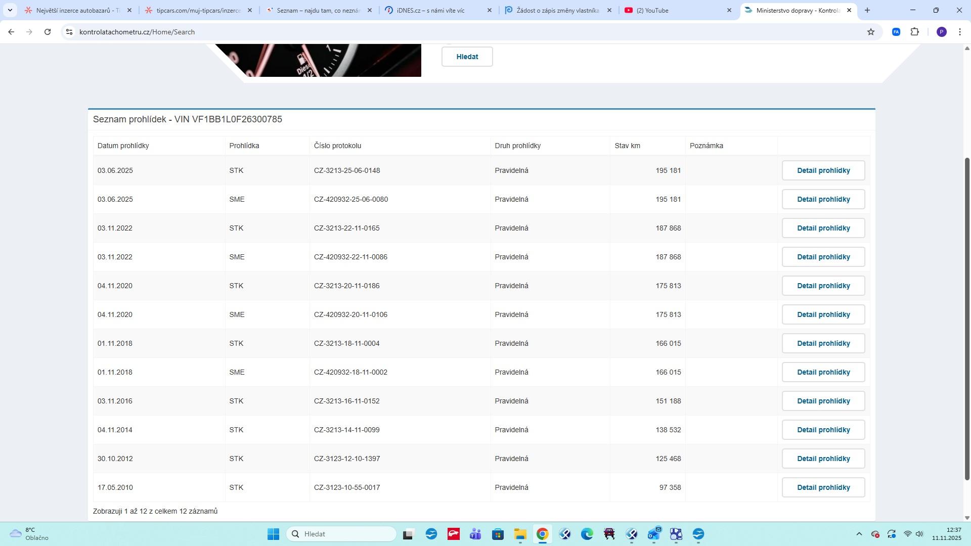 | Historie | Zobrazit historii vozu |