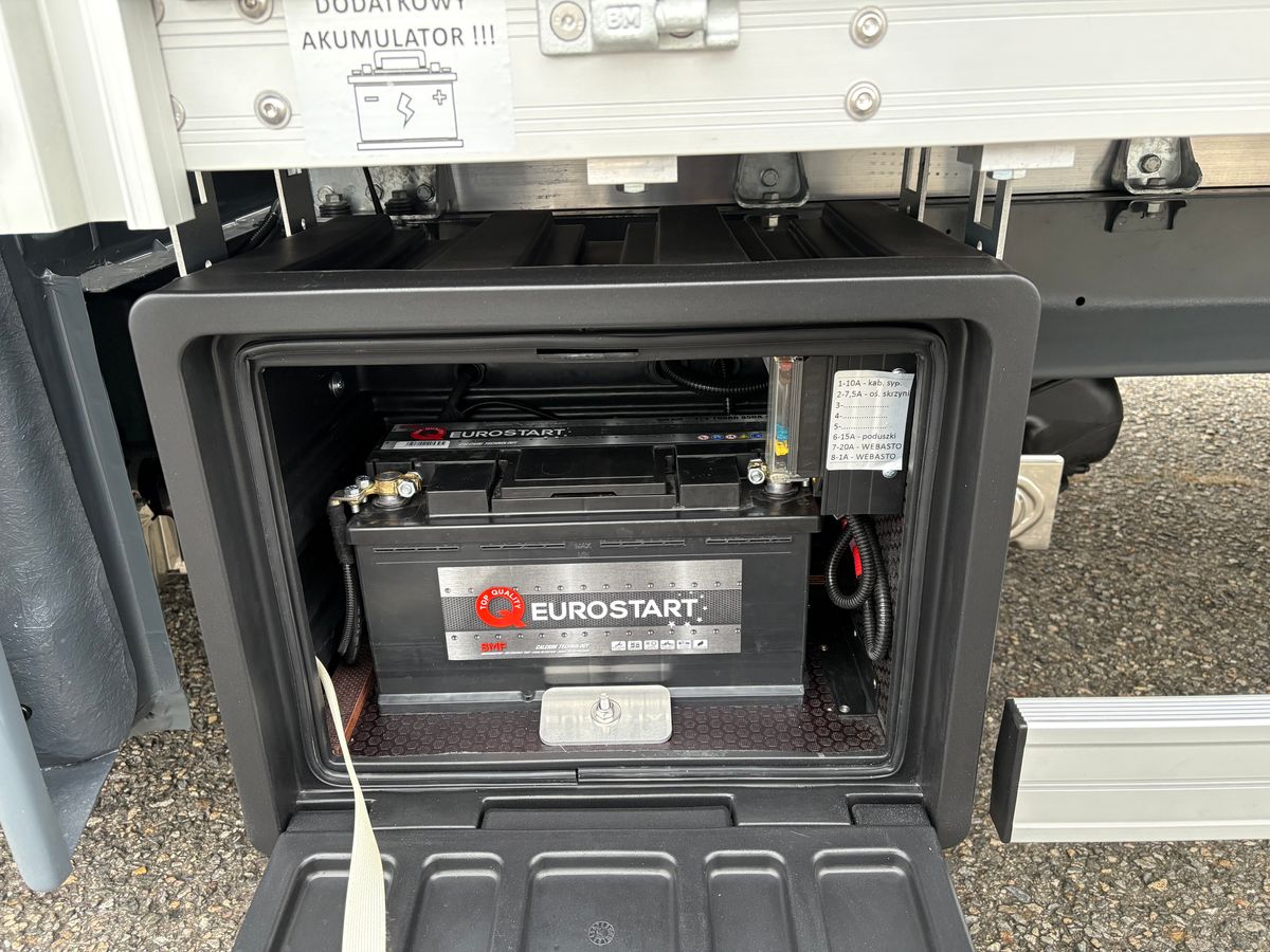 Renault Master 170k s plachtovou nástavbou na 10 palet. Rozměry nákladového prostoru: délka 485cm, šířka 225cm, výška 245cm. Spací kabina + nezávislé topení. Boční shrnovačka s napínákem. Vzduchové odpružení s manometry - dvouokruhové. Přídavná baterie. Parkovací senzory. Možnost dodělání tachografu.