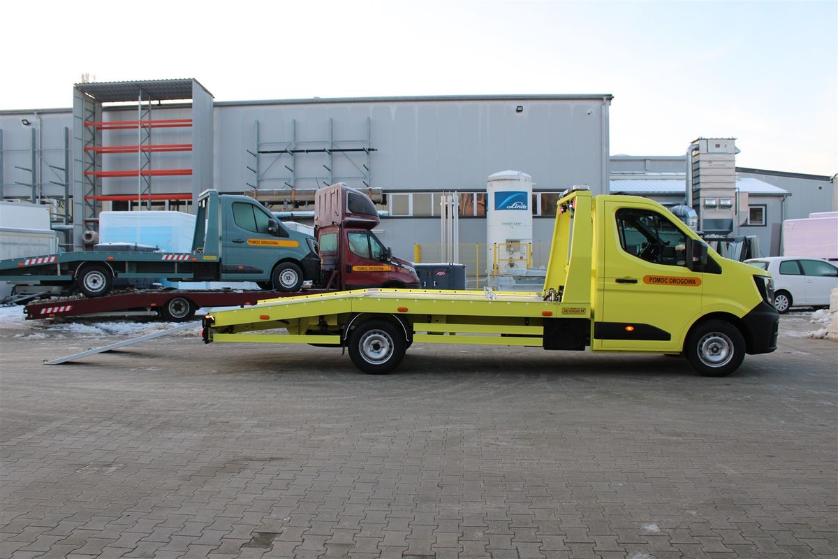 Renault Master s odtahovou nástavbou. Rozměry ložné plochy: délka 485cm, šířka 212cm.